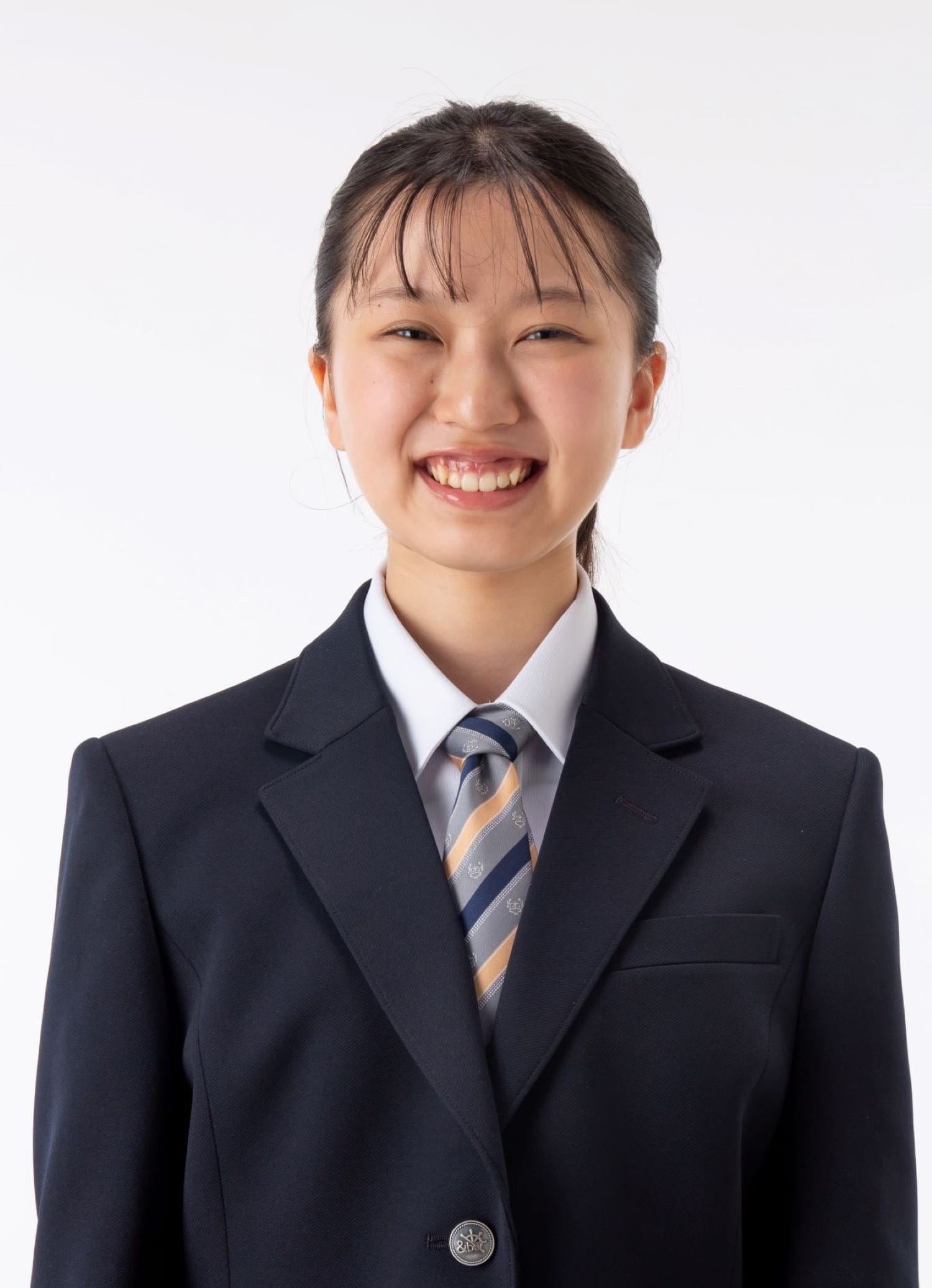 グレーベースにネイビーラインがきりり!どんなコーデにも使いやすいクレスト柄。コーデに元気をプラス!ヘルシーなオレンジカラー