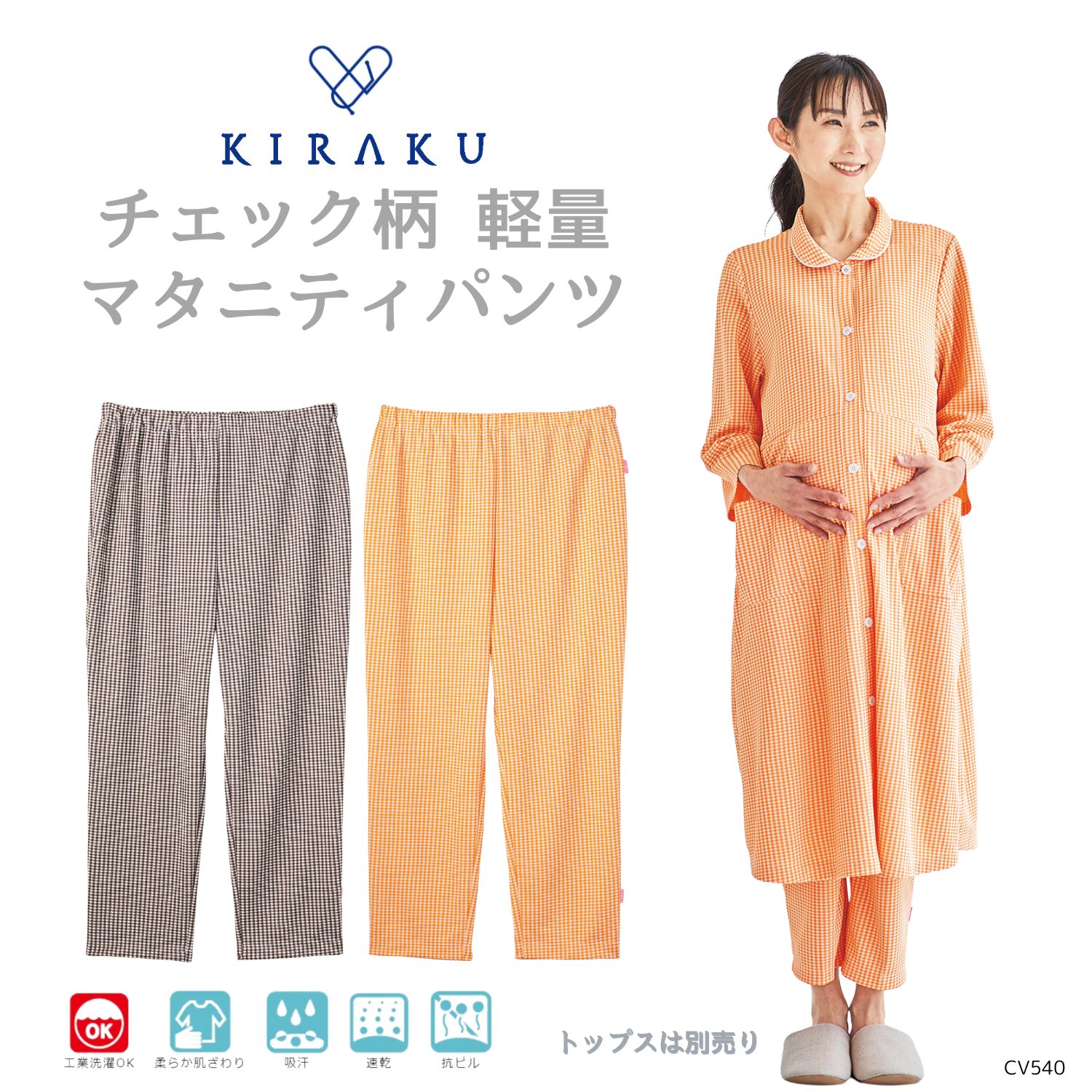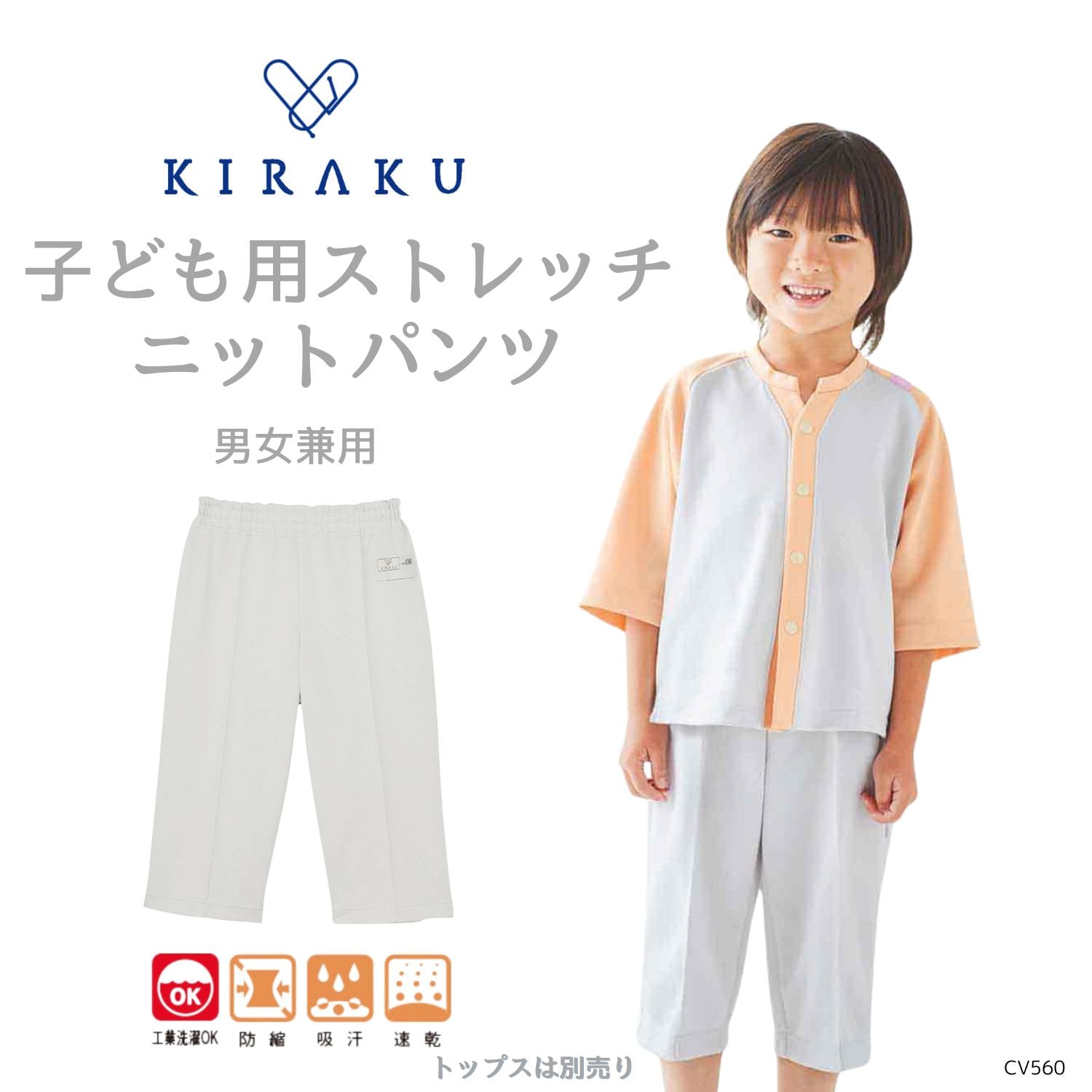 【品番: CV505 】 男女兼用 ストレートパンツ リハビリ 入院患者向け 夏用 清涼素材 縮みにくいズボン キラク