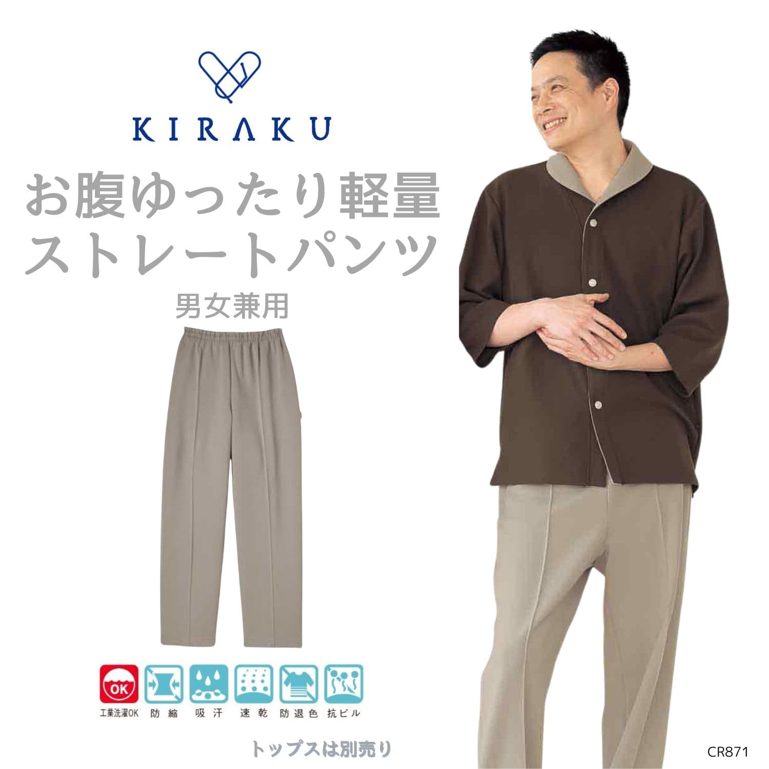 【品番: CR882 】 男女兼用 らくらくパンツ 高齢者ウエア パジャマ 通年 伸縮性があり着心地のよい素材 キラク