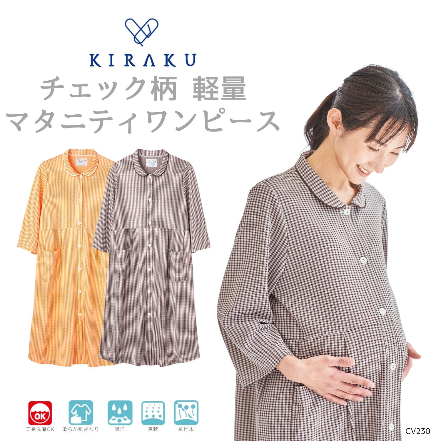 【品番: CV206 】 男女兼用 前開きシャツ リハビリ 入院患者向け ポケット付き 七分袖 清涼素材 軽量素材 キラク