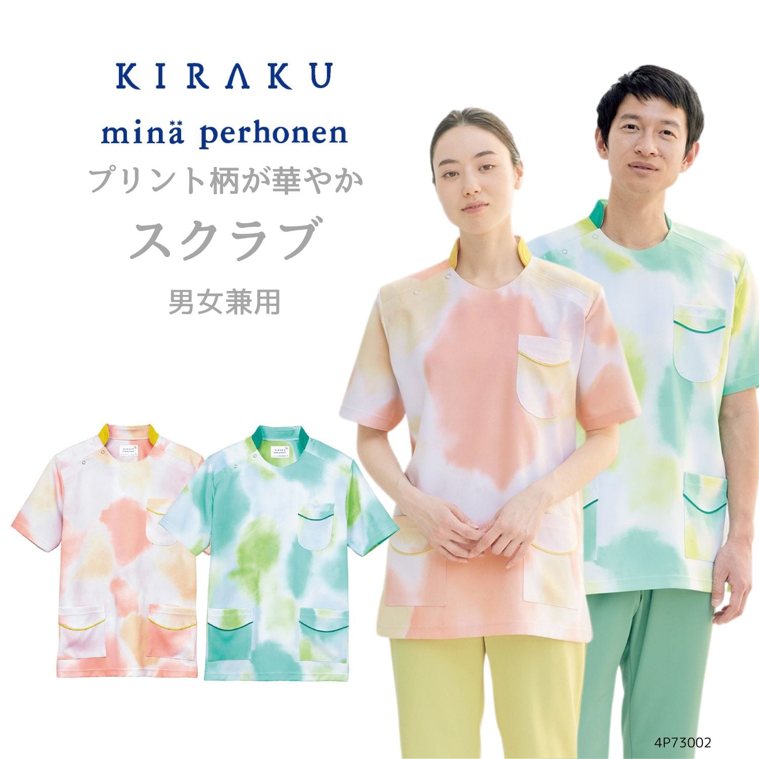【品番: 4P73002 】 男女兼用 プリント柄スクラブ 看護師用 制電 ストレッチ 防縮 吸汗 速乾 軽量 防透 制菌 SEKマーク ( ミナ ペルホネン )