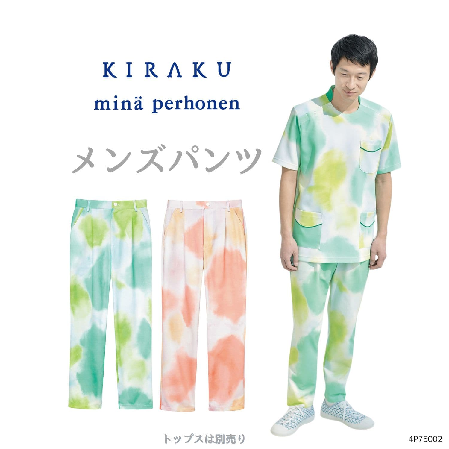【品番: 4P75002 】 メンズ プリント柄メンズパンツ 看護師用 制電 スーパー ストレッチ 防縮 吸汗 速乾 軽量 防透 制菌 SEKマーク 股下フリー丈 ( ミナ ペルホネン )