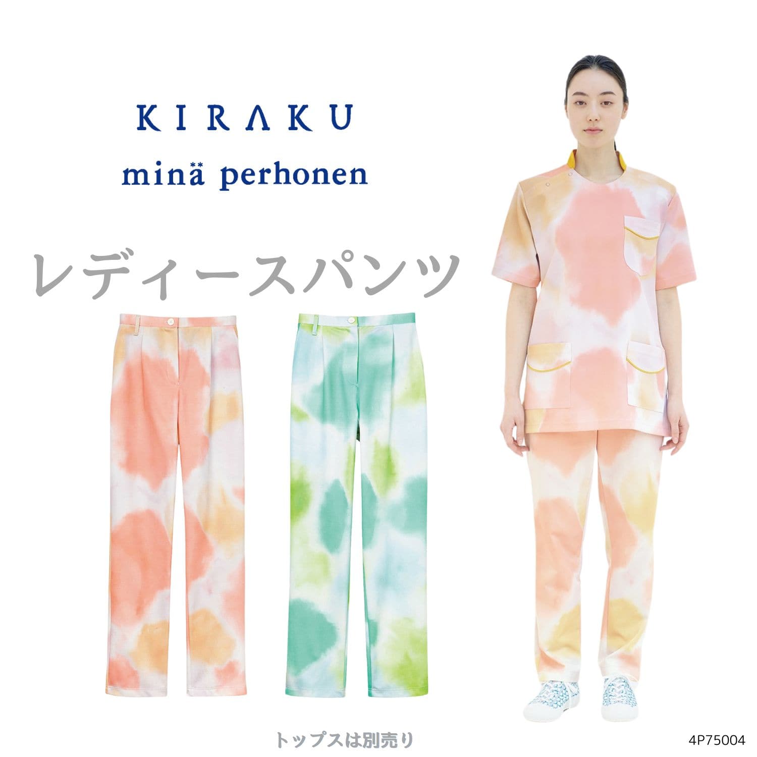 【品番: 4P75004 】 レディース プリント柄レディースパンツ 看護師用 制電 ストレッチ 防縮 吸汗 速乾 軽量 防透 制菌 SEKマーク 股下フリー丈 ( ミナ ペルホネン )