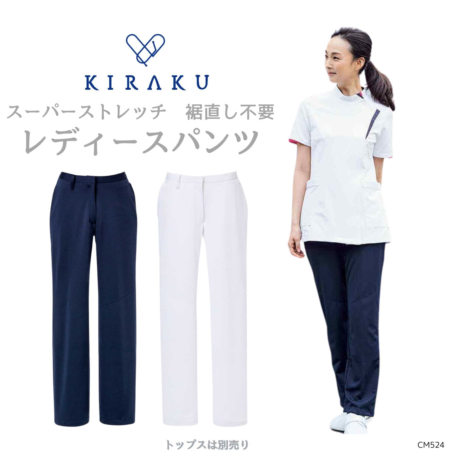 【品番: CM524 】 レディース ストレートパンツ 看護師 PT OT 耐久性アップ 膝抜け防止 動きやすい 裾直し不要 キラク