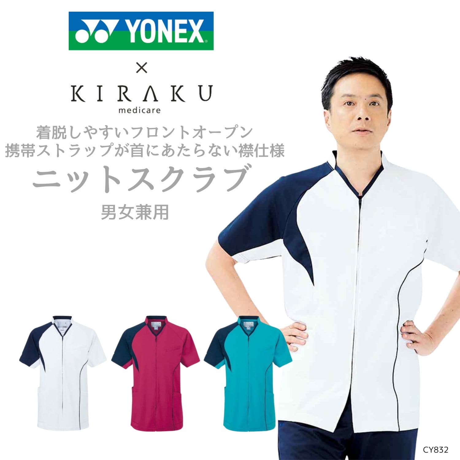 【品番: CY832 】 男女兼用 前開きスクラブ 看護師 PTOT向け 超ストレッチ&通気性 YONEX × キラク