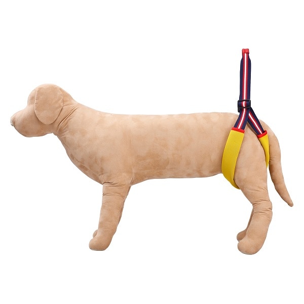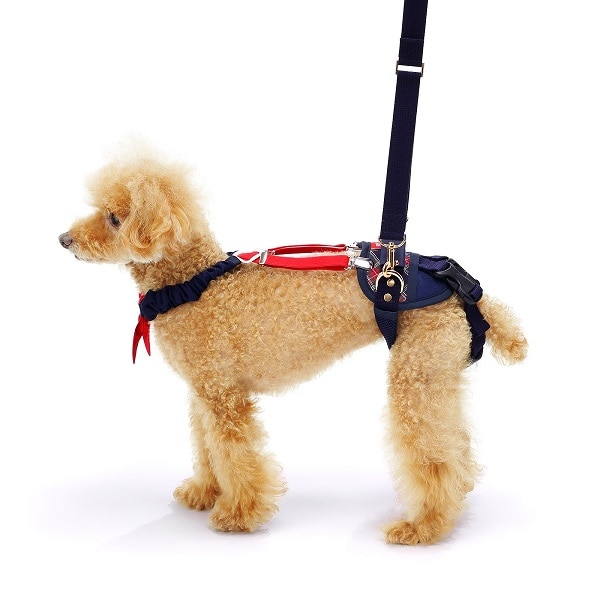 学生服のトンボが作った歩行補助ハーネスLaLaWalk。体重の7割がかかる後ろ足をしっかりと根本から支える歩行補助ハーネスです。