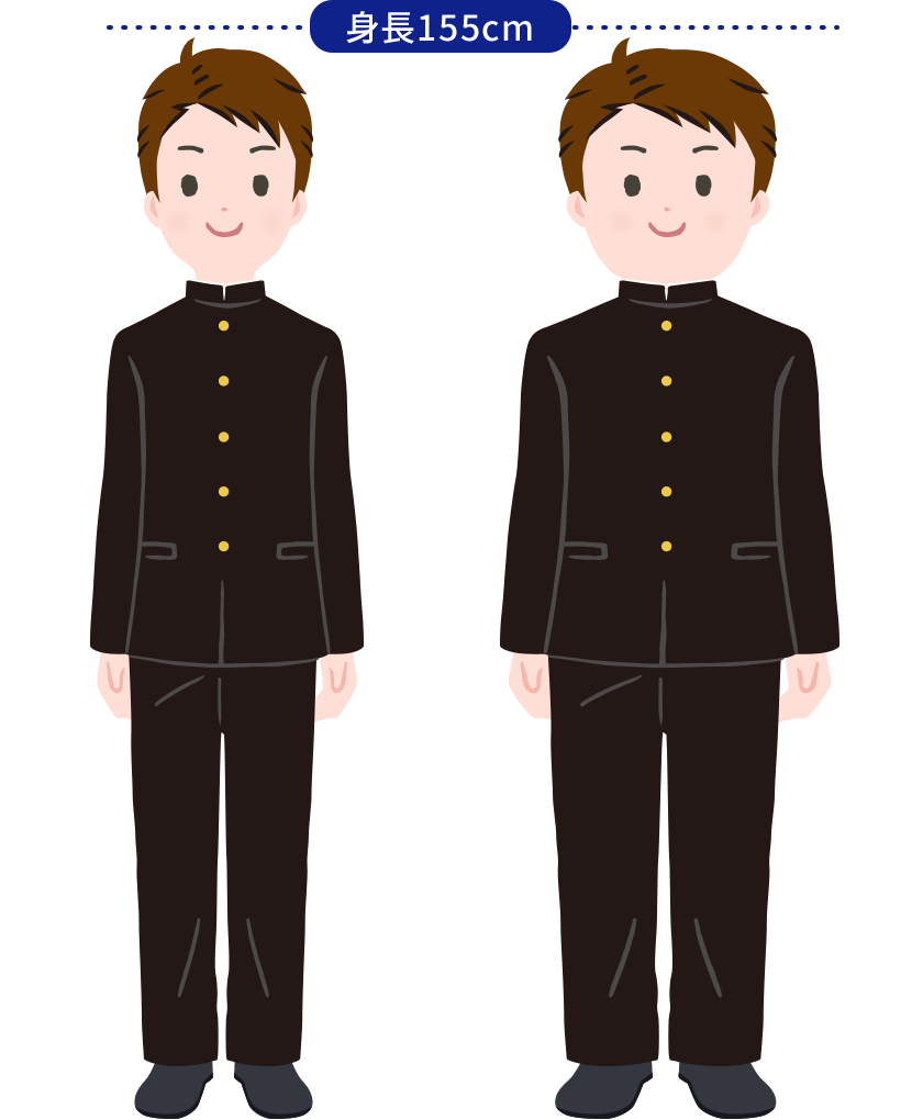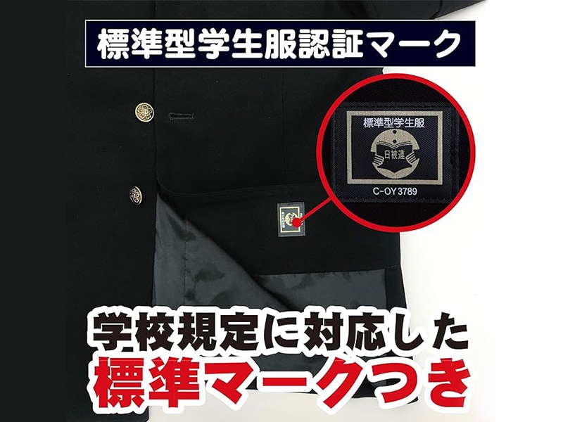 標準型学生服日本被服連盟標準型マーク付きの学ランが多くの学校の規定になっています。このマークがついた学ランをお選びいただくことで、規定違反を心配することなく安心して過ごすことができます。