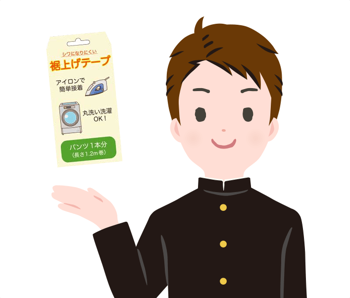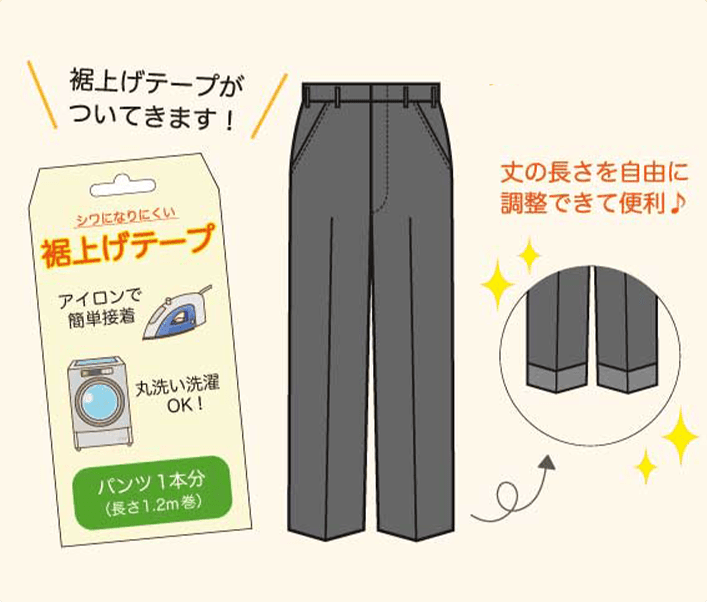 ご自宅で裾上げが出来る裾上げテープがついてきます。