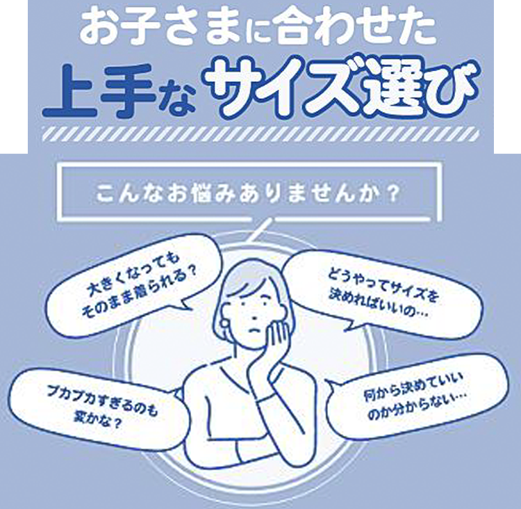 袖口が伸ばせる成長設計お子様が成長しても、袖を伸ばすことで長期間使用できる設計です。