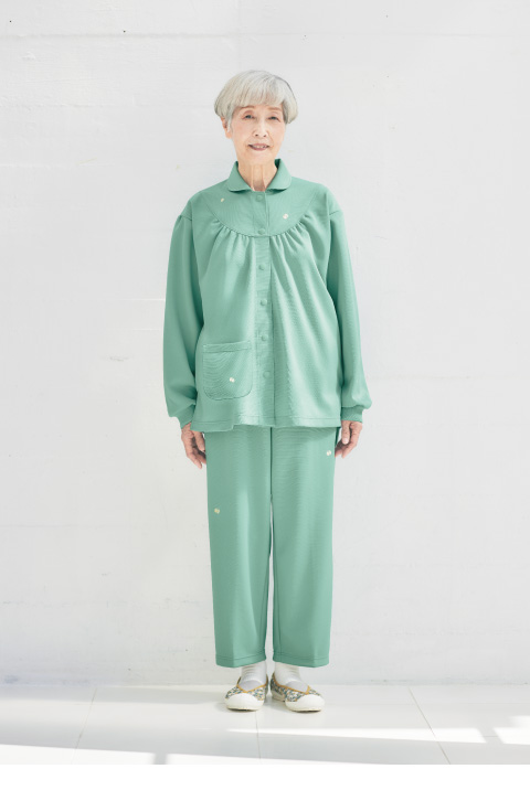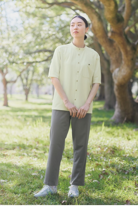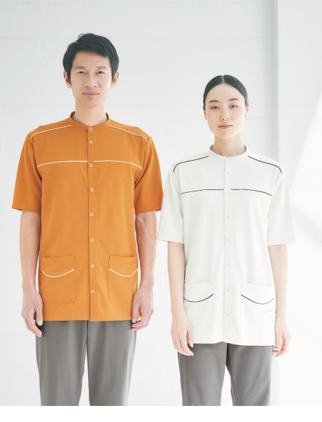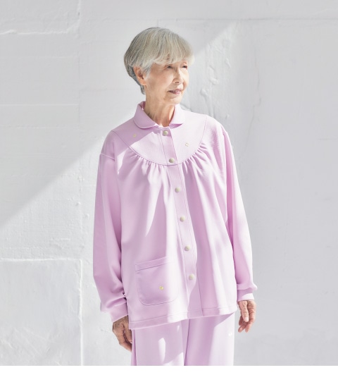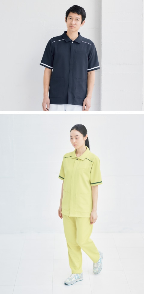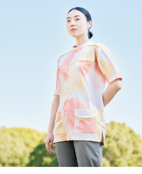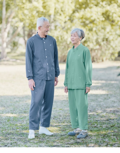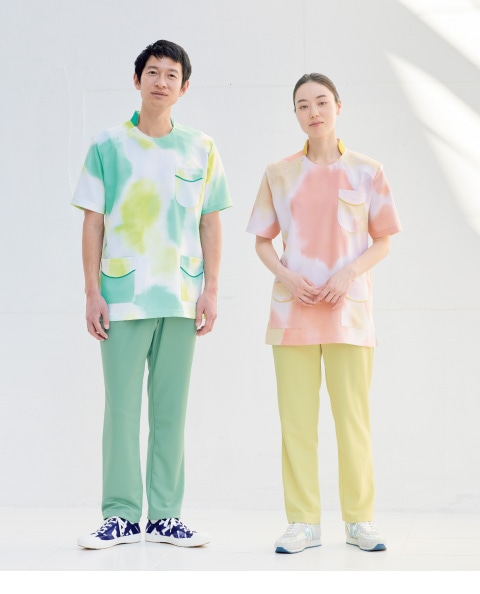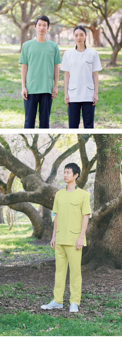 より作業しやすく、より生活しやすく。介護するひとにとっても、介護される人にとっても動きやすいウエアをめざしました。さらに、気持ちを明るく高揚させてくれるビタミンカラーを採り入れ、体だけでなく心ものびやかに動き出すような、あたらしいヘルスケアウエアが生まれました。
