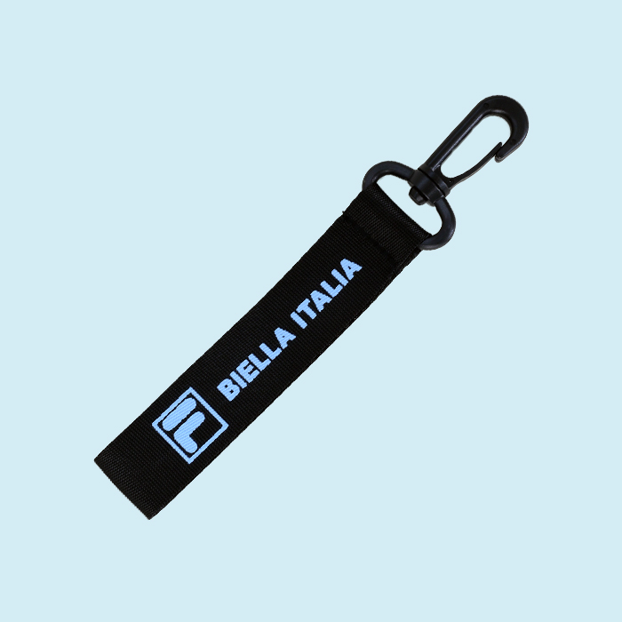 アクセントになるブランドネームキーホルダー付き。