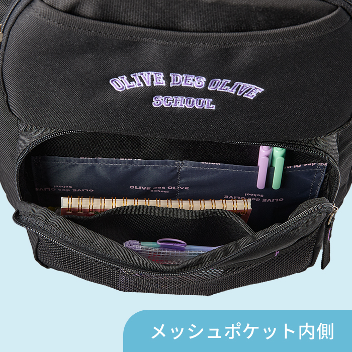 メイン収納とは別に、靴やお弁当などが入るポケット付き。