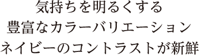 気持ちを明るくする豊富なカラーバリエーションネイビーのコントラストが新鮮.1デザイン
