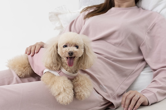 また多頭飼いのご家庭では、体格が異なるわんちゃんたちにお揃いで着せられるのも嬉しいポイント。どの子にも、同じやさしさを。