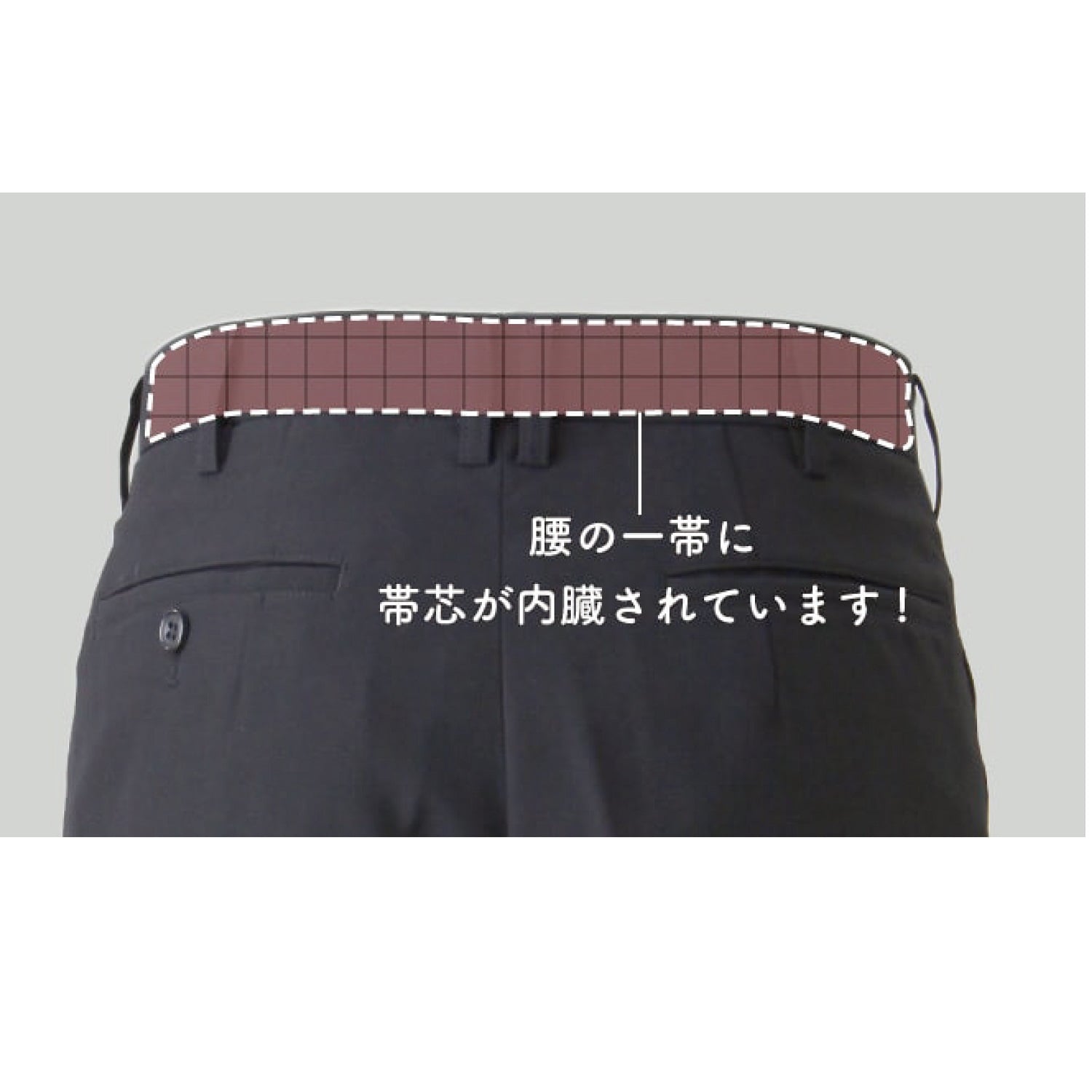 腰まわりには、体の体形に合わせてカーブ型の頑丈な芯地を使用しており、3年間履いても型崩れしません。