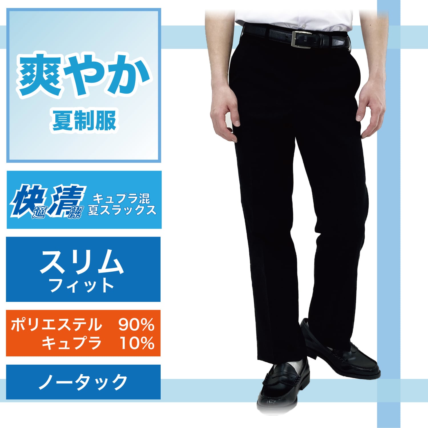 〈夏用/スッキリシルエット〉サラッと快適 抗菌ストレッチ 夏スラックス トンボ 学生服