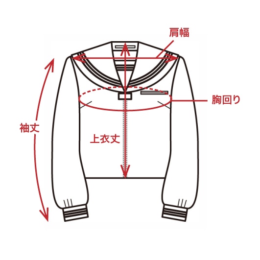 洗濯機で洗えるセーラー服 かぶり型 長袖 トンボ 学生服