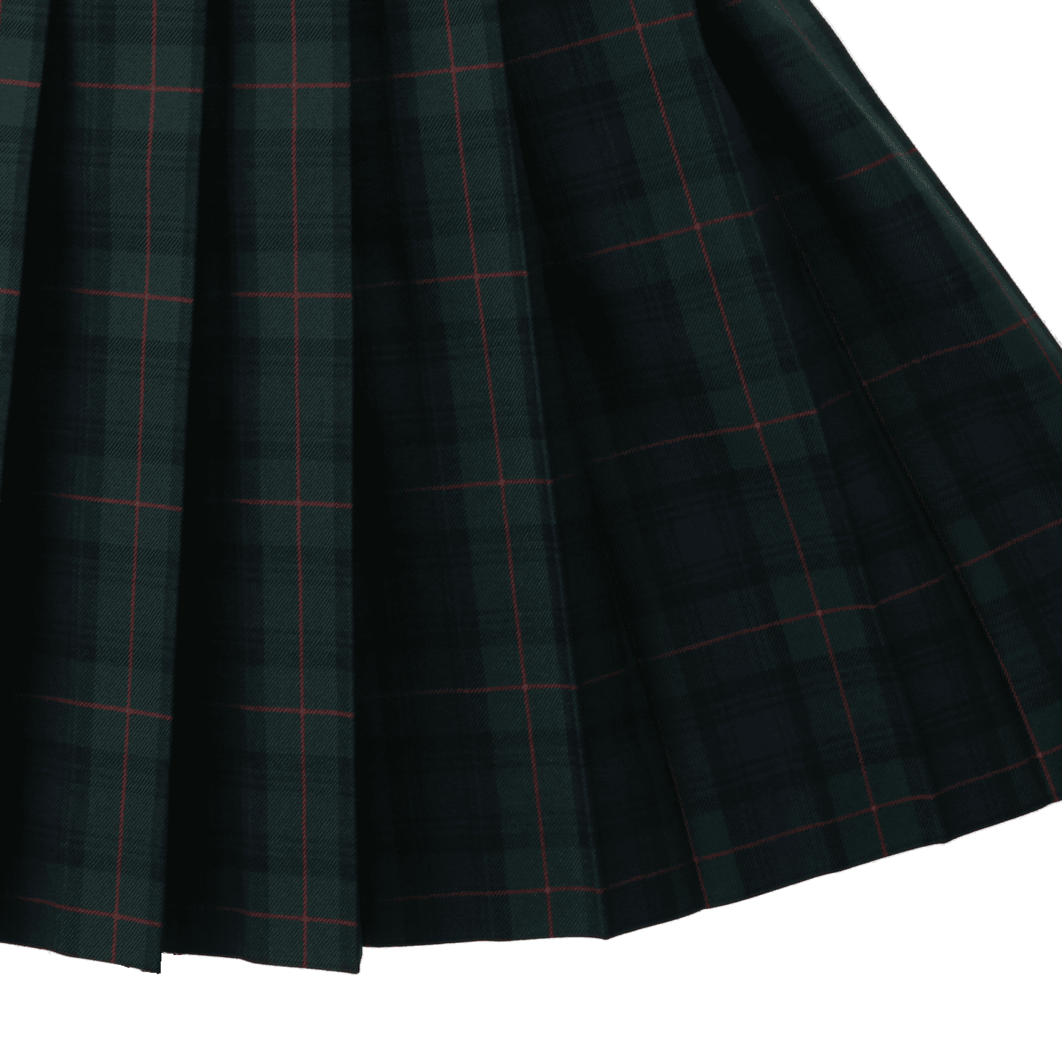 紺色ベースにグリーンとエン ジのタータンチェック柄のス カート。王道の配色でクラ シックな着こなしができま す。