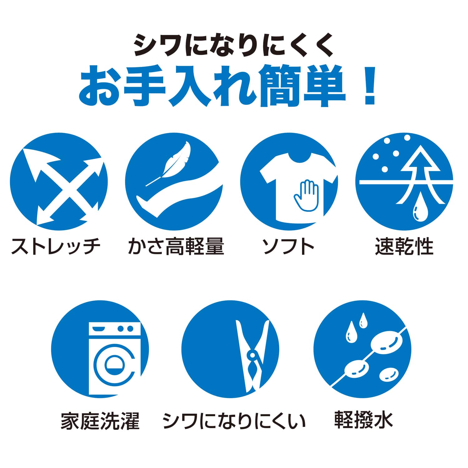 ・カビ、異臭予防のために、着用後は速やかに、風通しの良い場所にハンガー掛けにして、湿気をとり除くようにしてください。