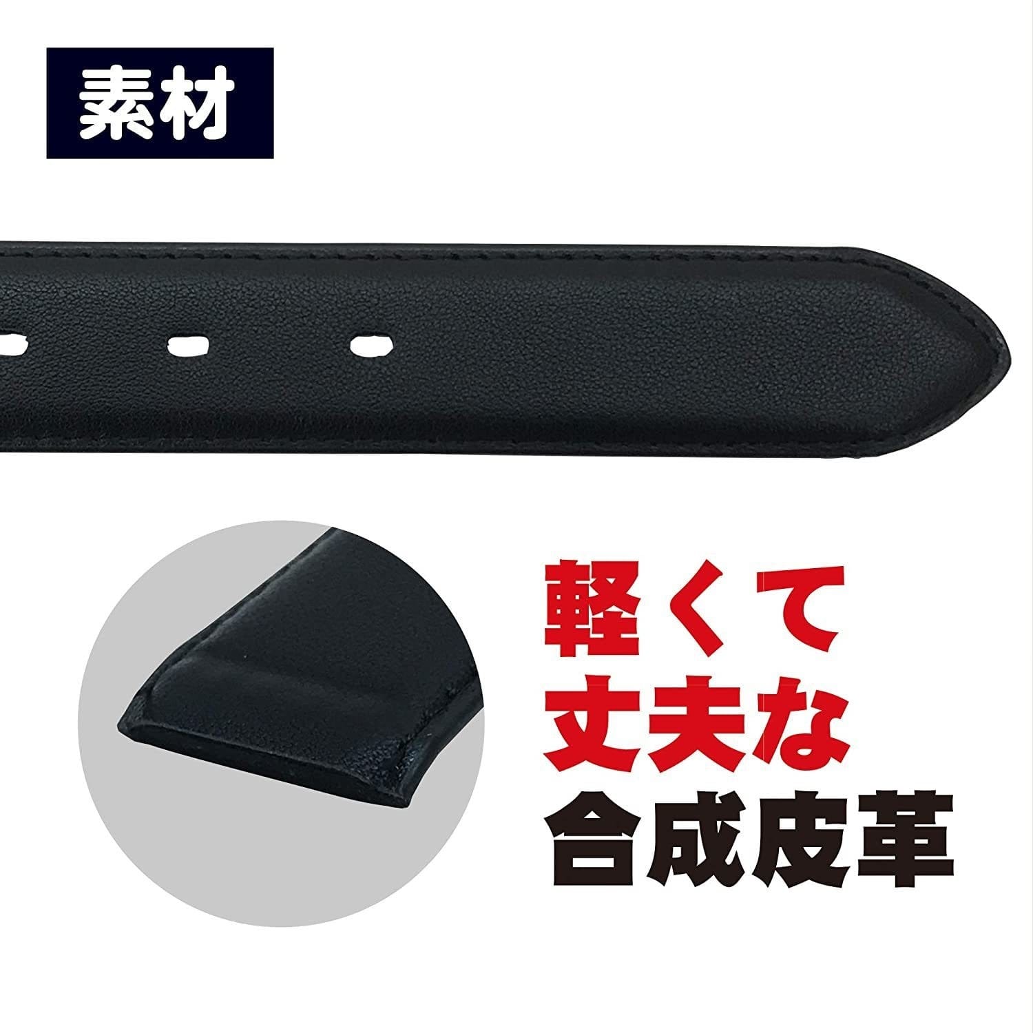 やわらかくしなやかな合成皮革。スタイリッシュな尾錠がオシャレさを引き立てます。お手頃な価格で高品質、スタンダードなデザインのベルトです