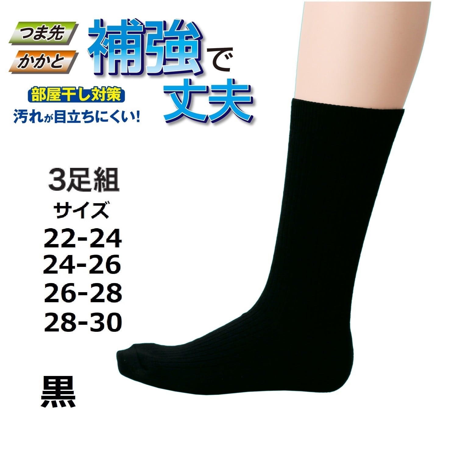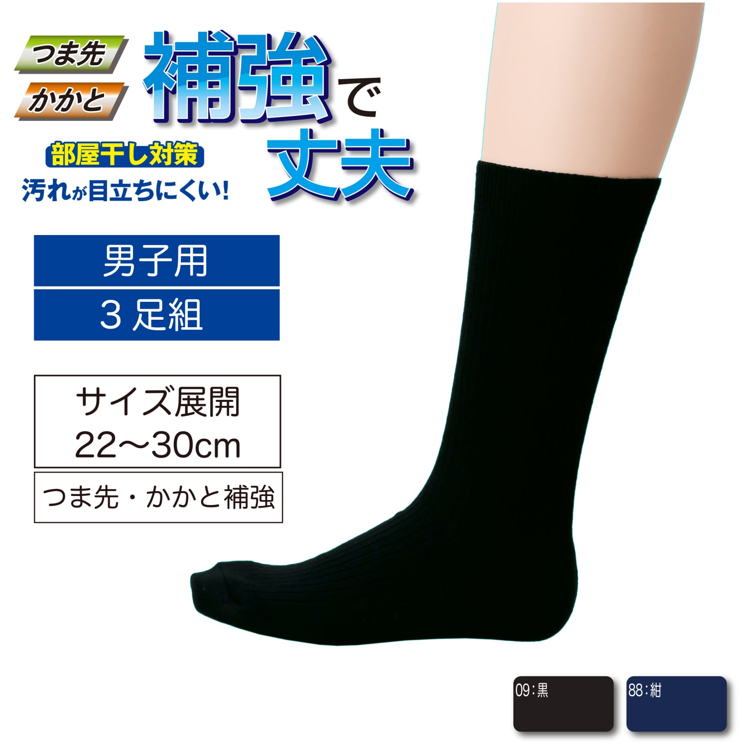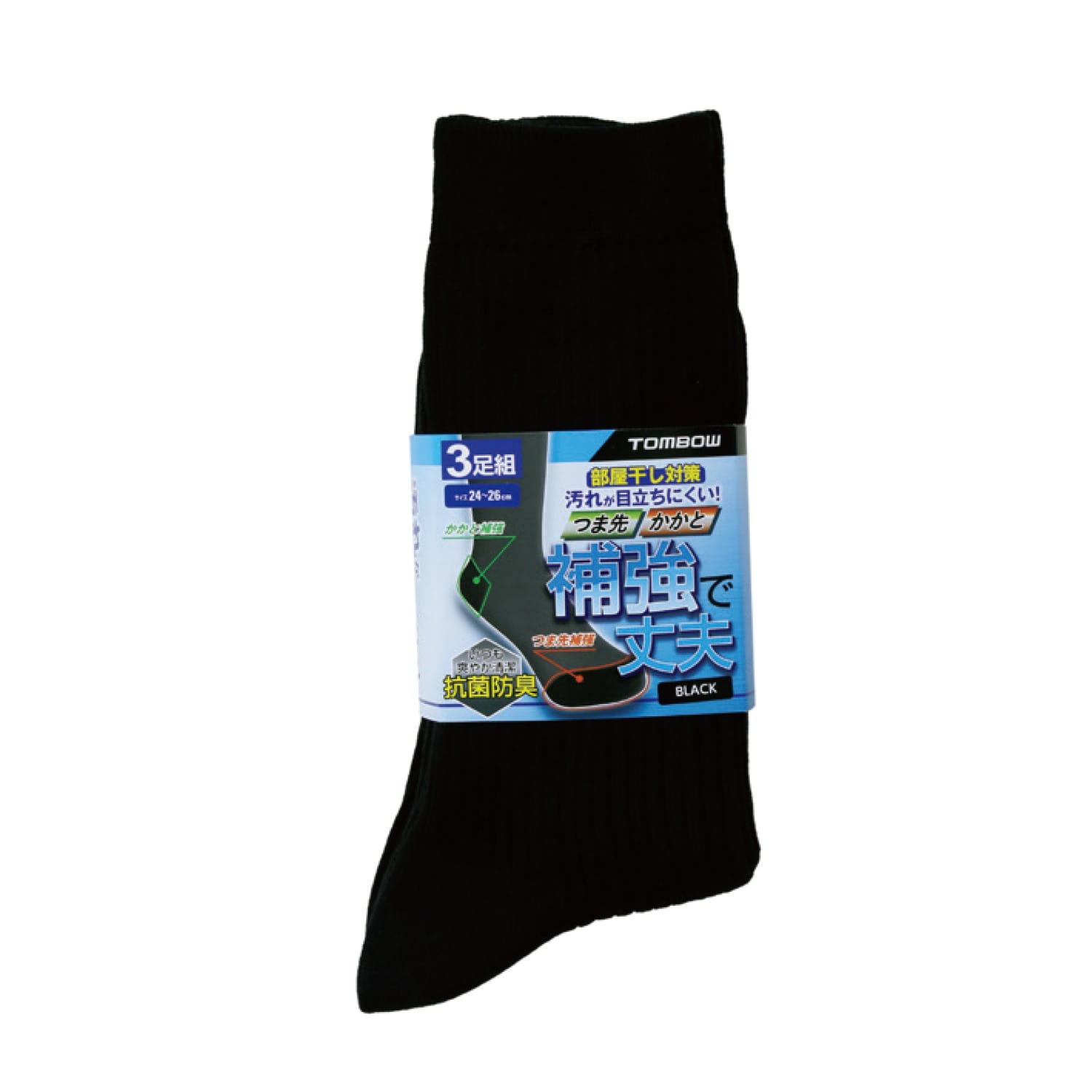 靴下 〈3足組〉 24.5cm丈 抗菌防臭 つま先/かかと補強 男女兼用ソックス トンボ 学生服