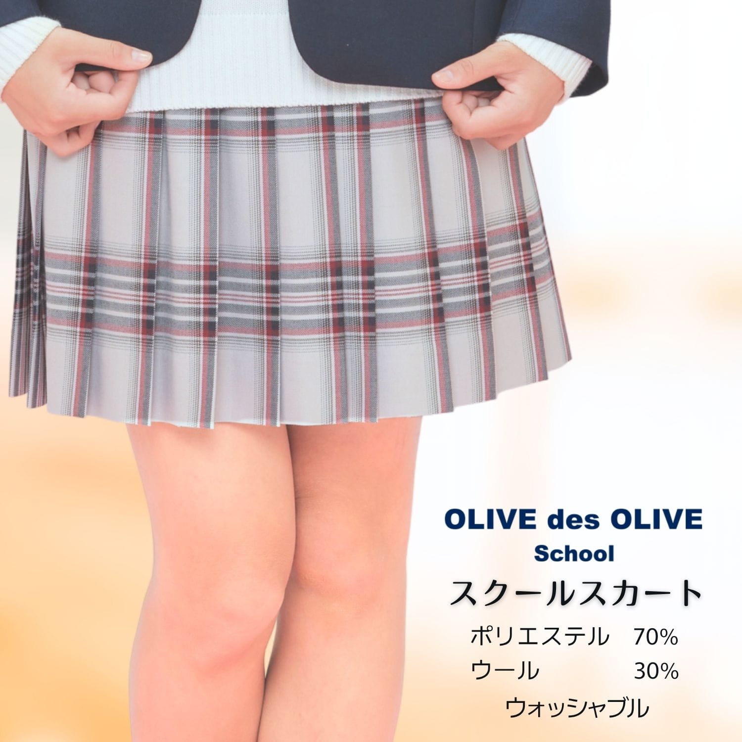 チェック柄スカート ベージュ×赤 18本車ひだ オリーブデオリーブスクール
