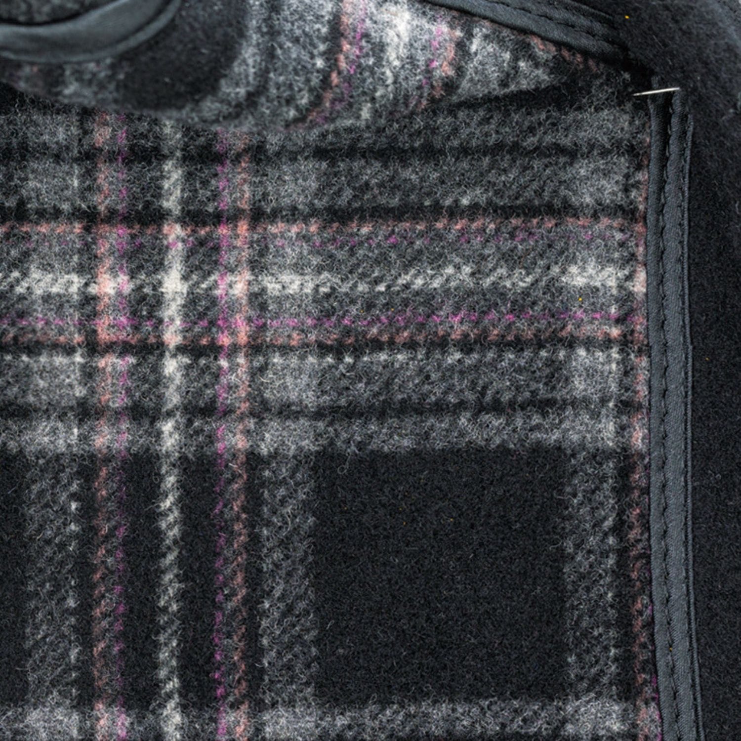 表は無地、裏はチェック柄の2種類の生地を織り合わせて作った