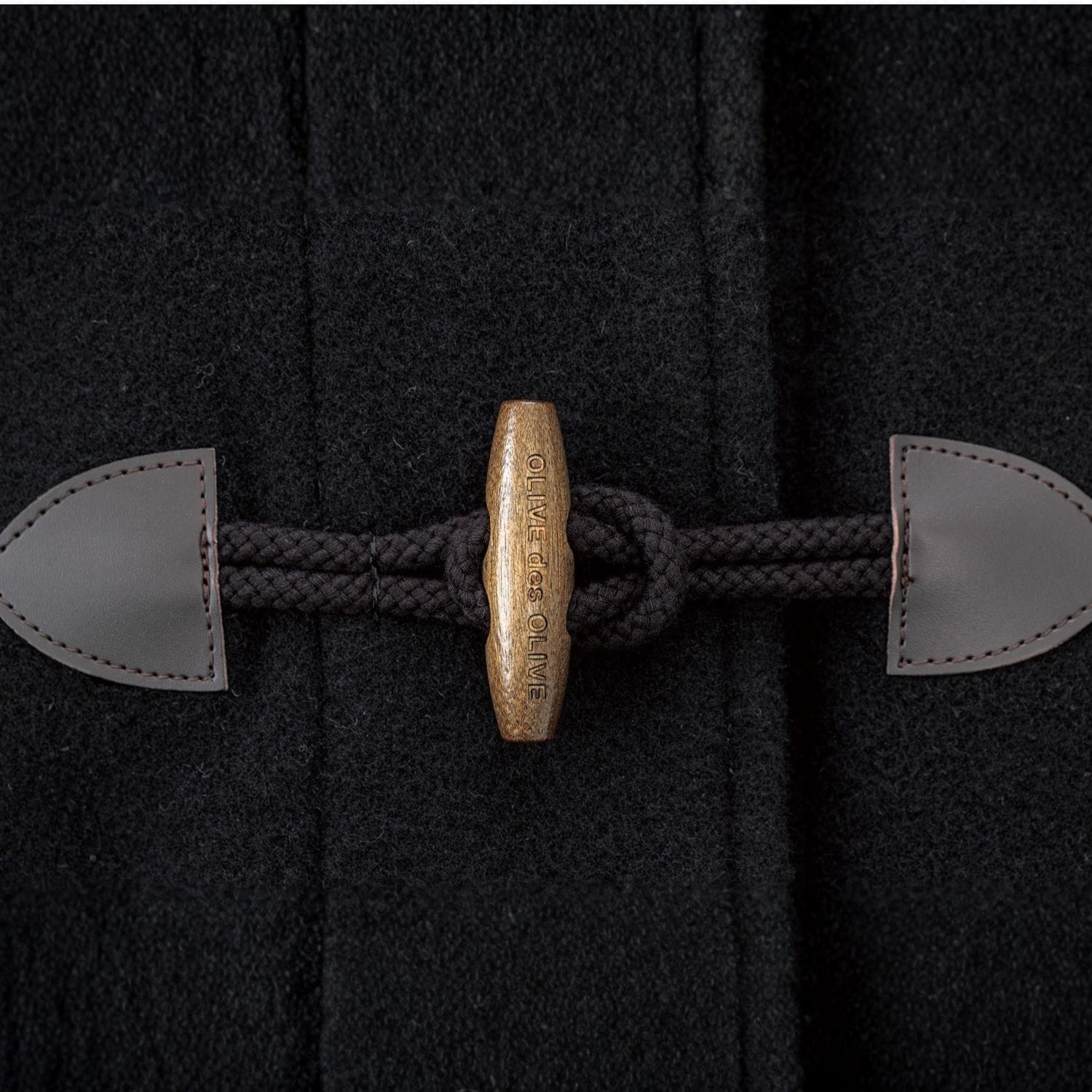 ダッフルコート ダブルフェイス素材 ファスナー付き オリーブデオリーブスクール