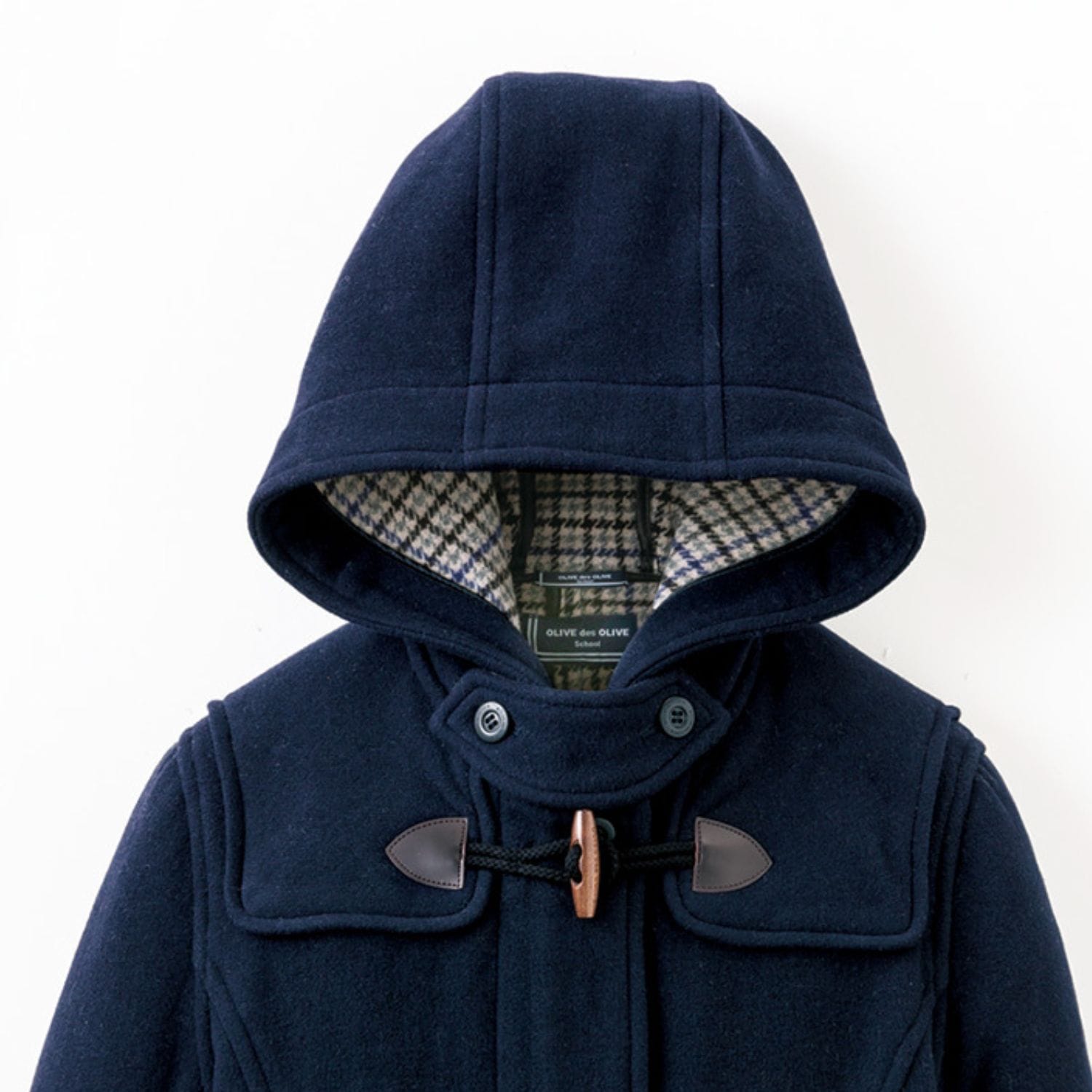 ダッフルコート ダブルフェイス素材 ファスナー付き オリーブデオリーブスクール