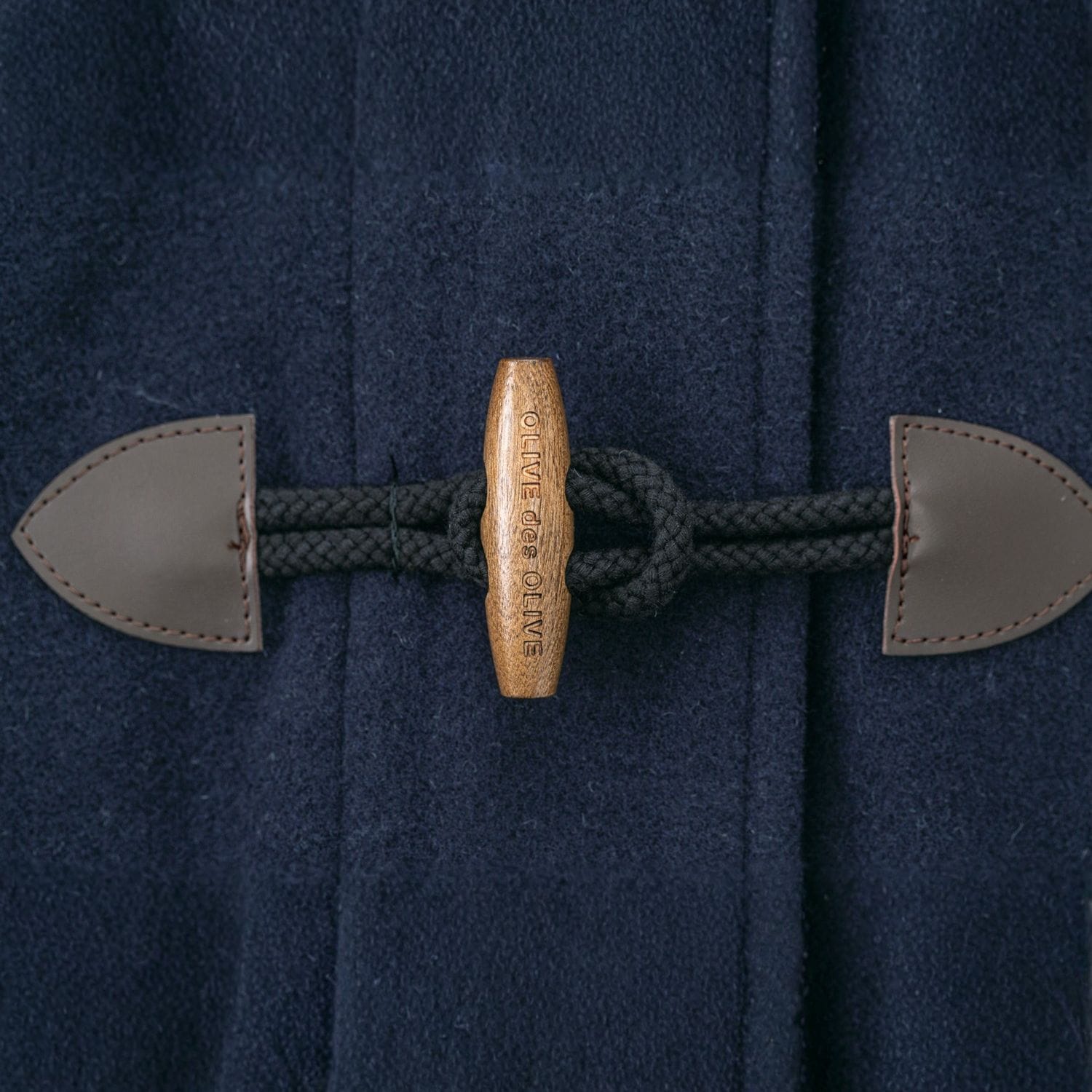 ブランドロゴが刻印されている本物の木のトグルを使用。