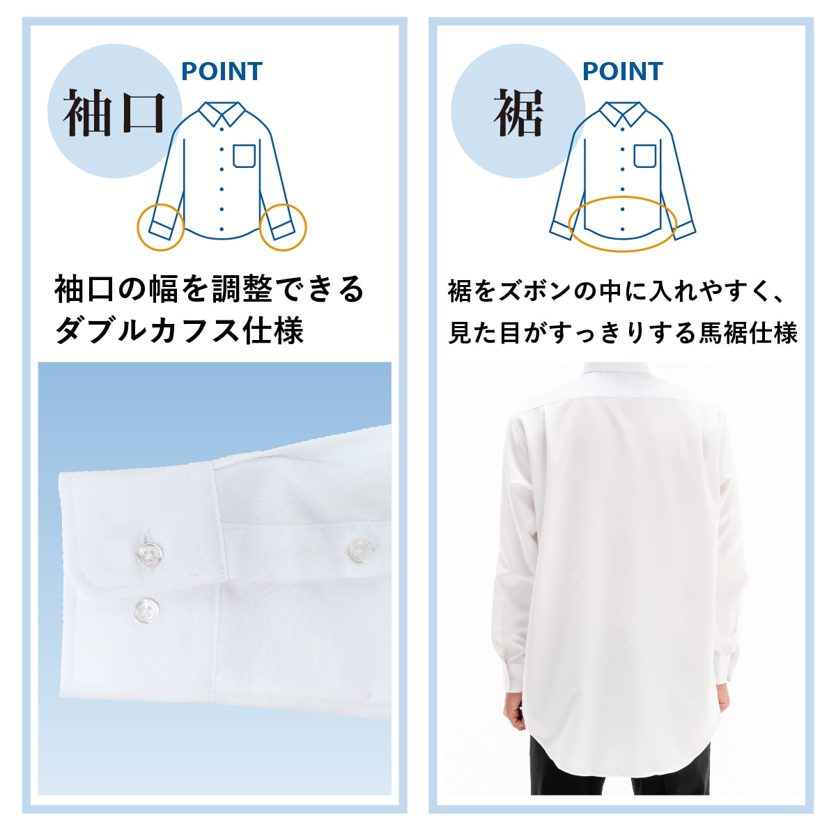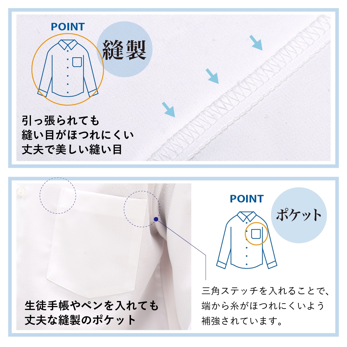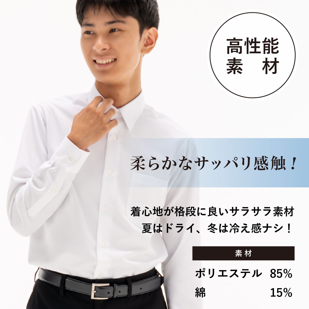 男子 長袖 究極のノーアイロン ベトつき汗冷え防止 カッターシャツ トンボ 学生服