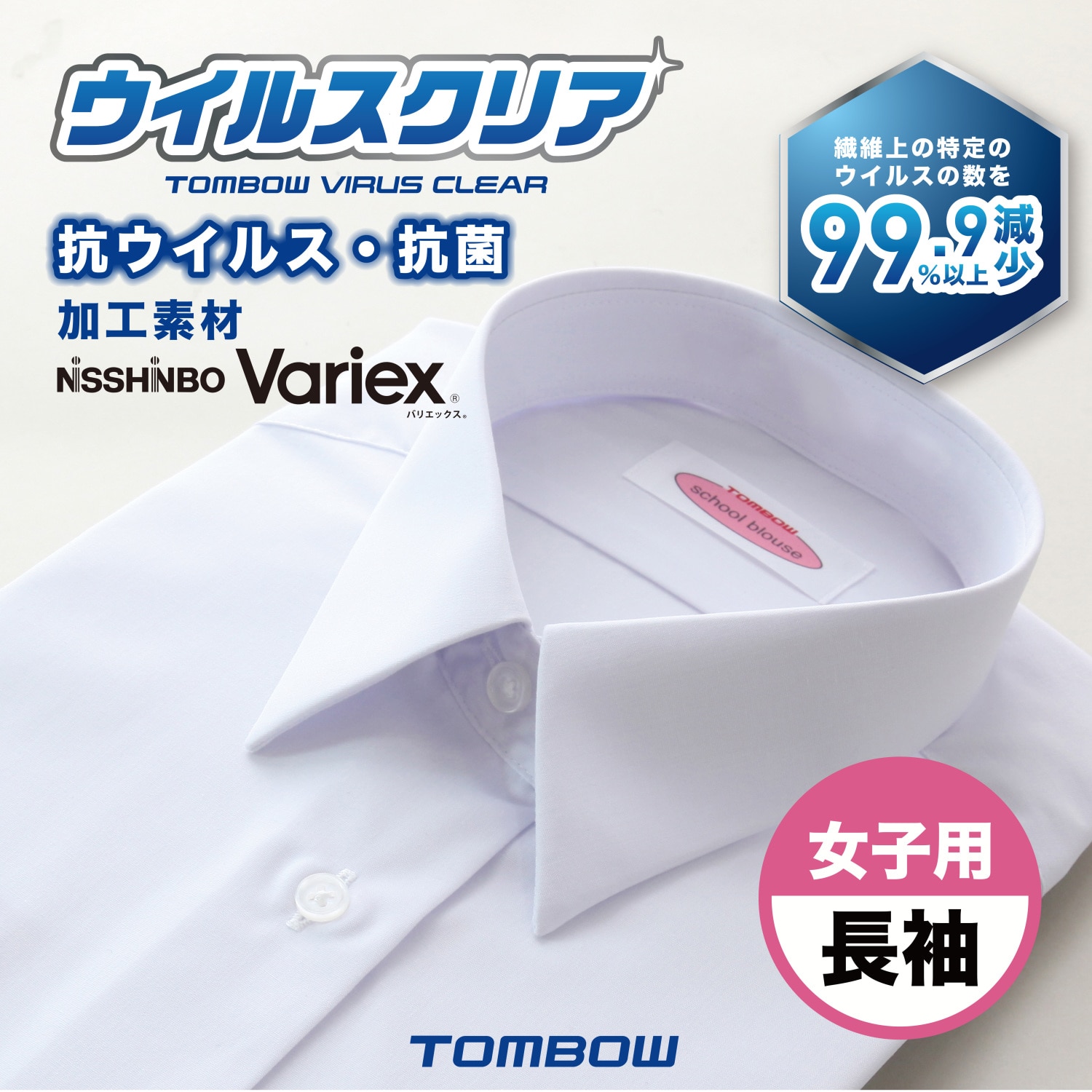 女子 長袖 抗ウイルス 抗菌 いつも清潔 ウイルスクリア カッターシャツ ワイシャツ トンボ 学生服
