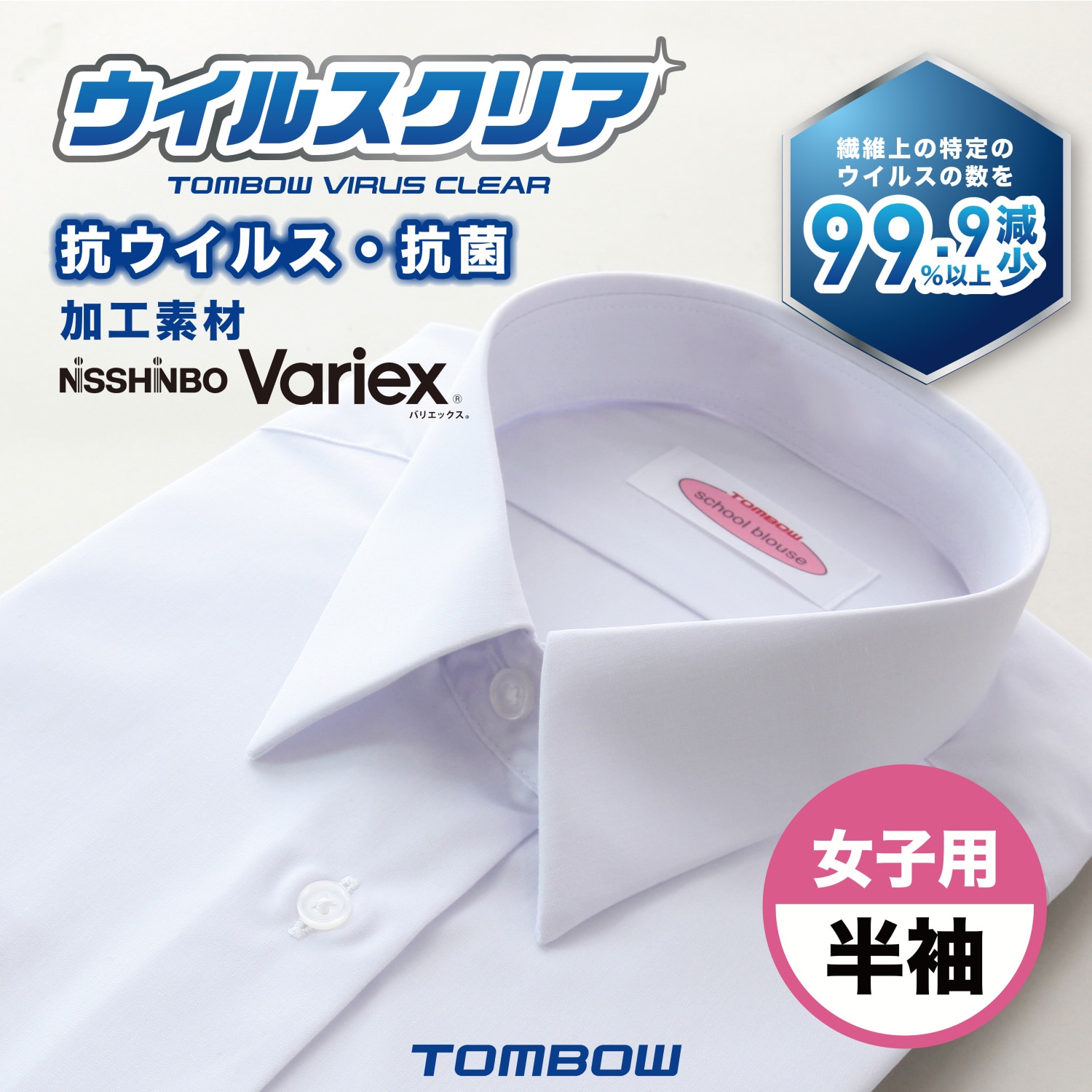 女子 半袖 抗ウイルス 抗菌 いつも清潔 ウイルスクリア カッターシャツ ワイシャツ トンボ 学生服