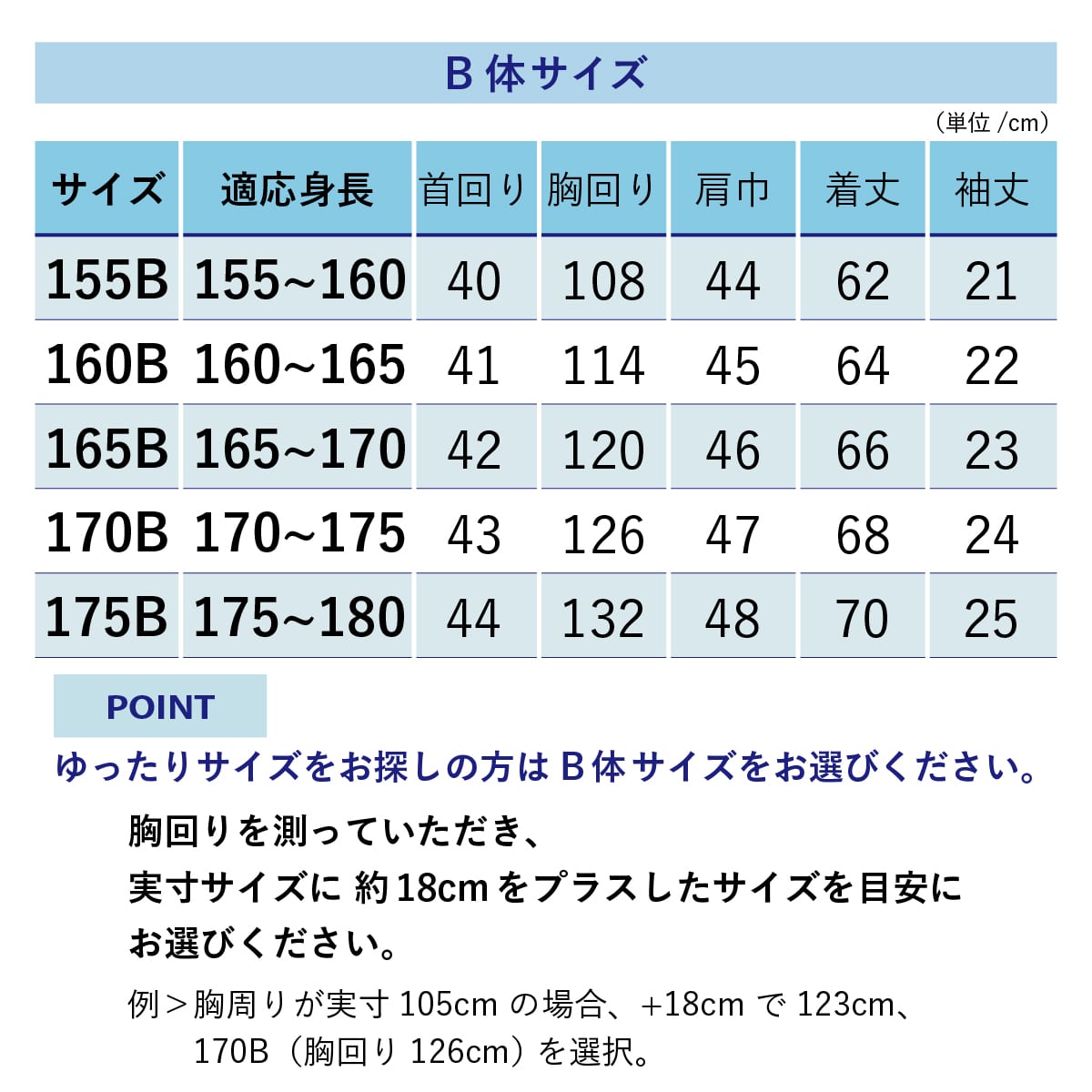 ・ゆったりサイズをお探しの方はB体サイズをお選びください。