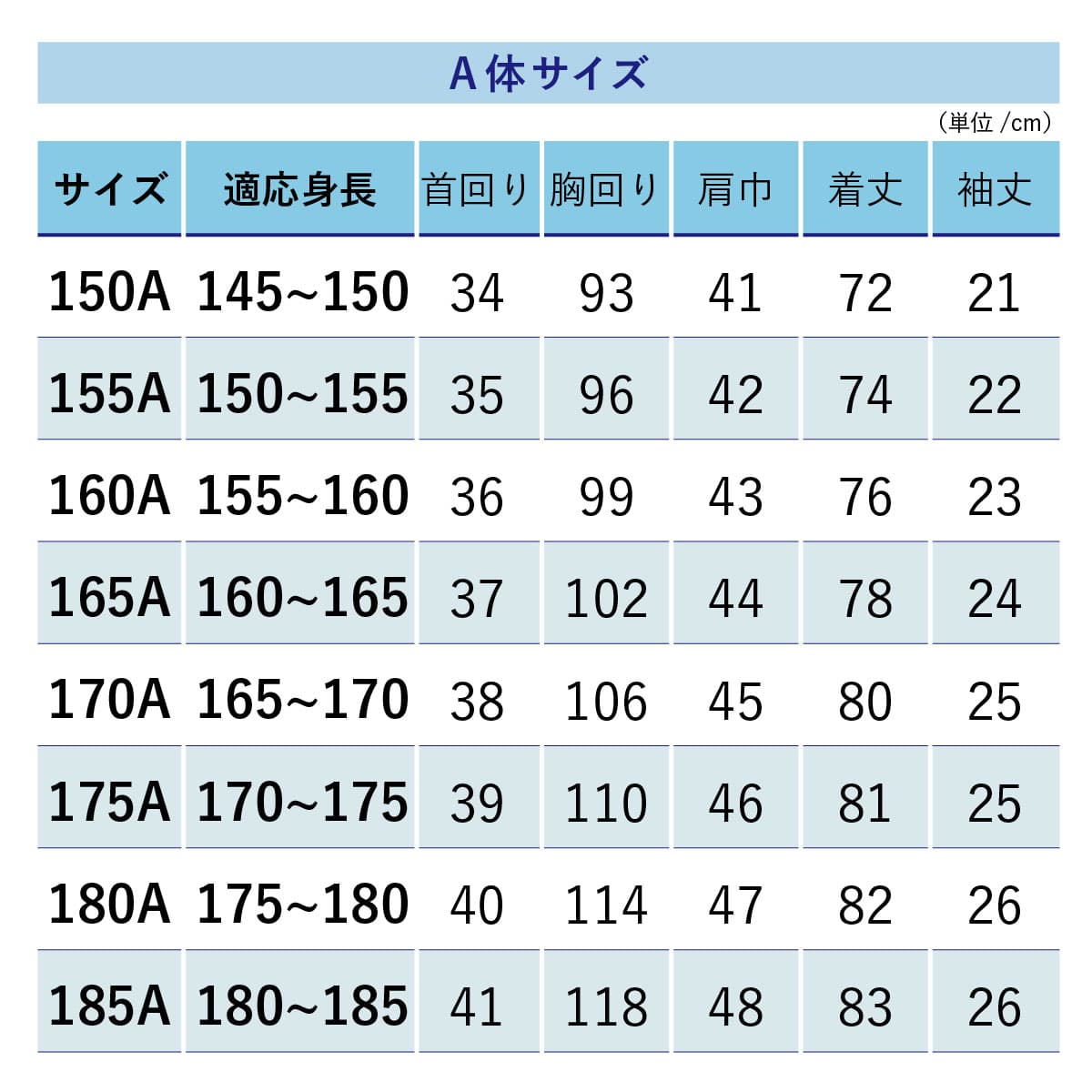 A体:150A /155A /160A /165A /170A /175A /180A /185A