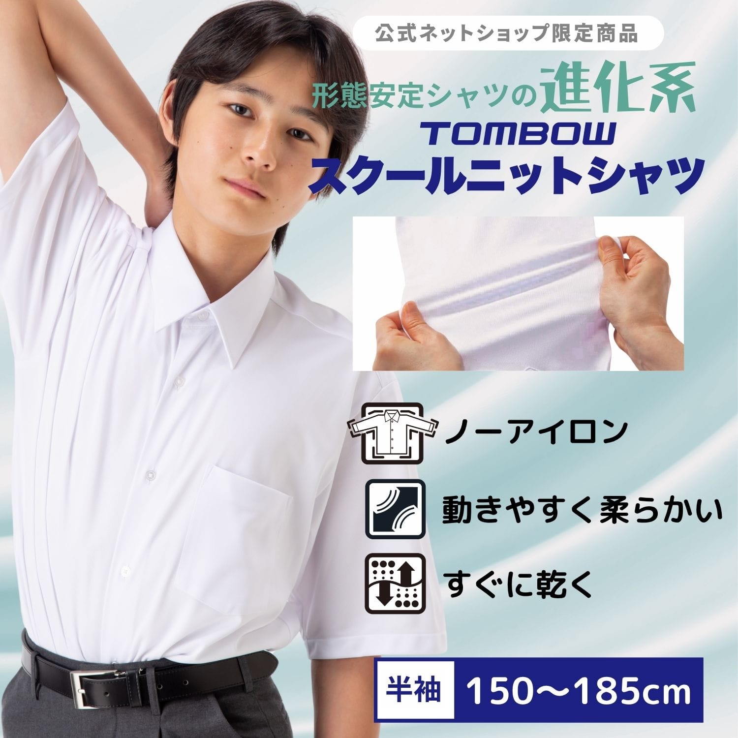 男子 半袖 ニット素材 速乾 着心地バツグン 高機能 ニットシャツ カッターシャツ ワイシャツ トンボ 学生服