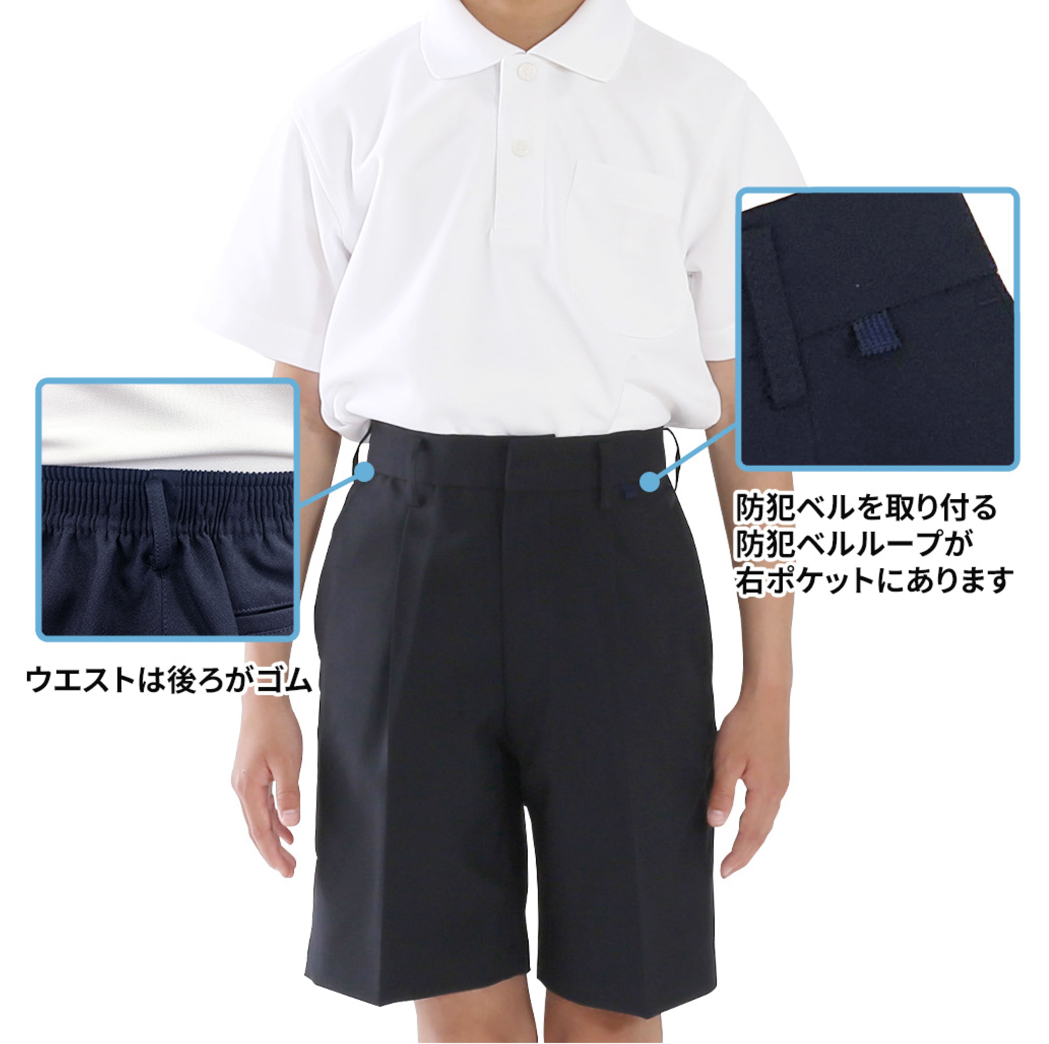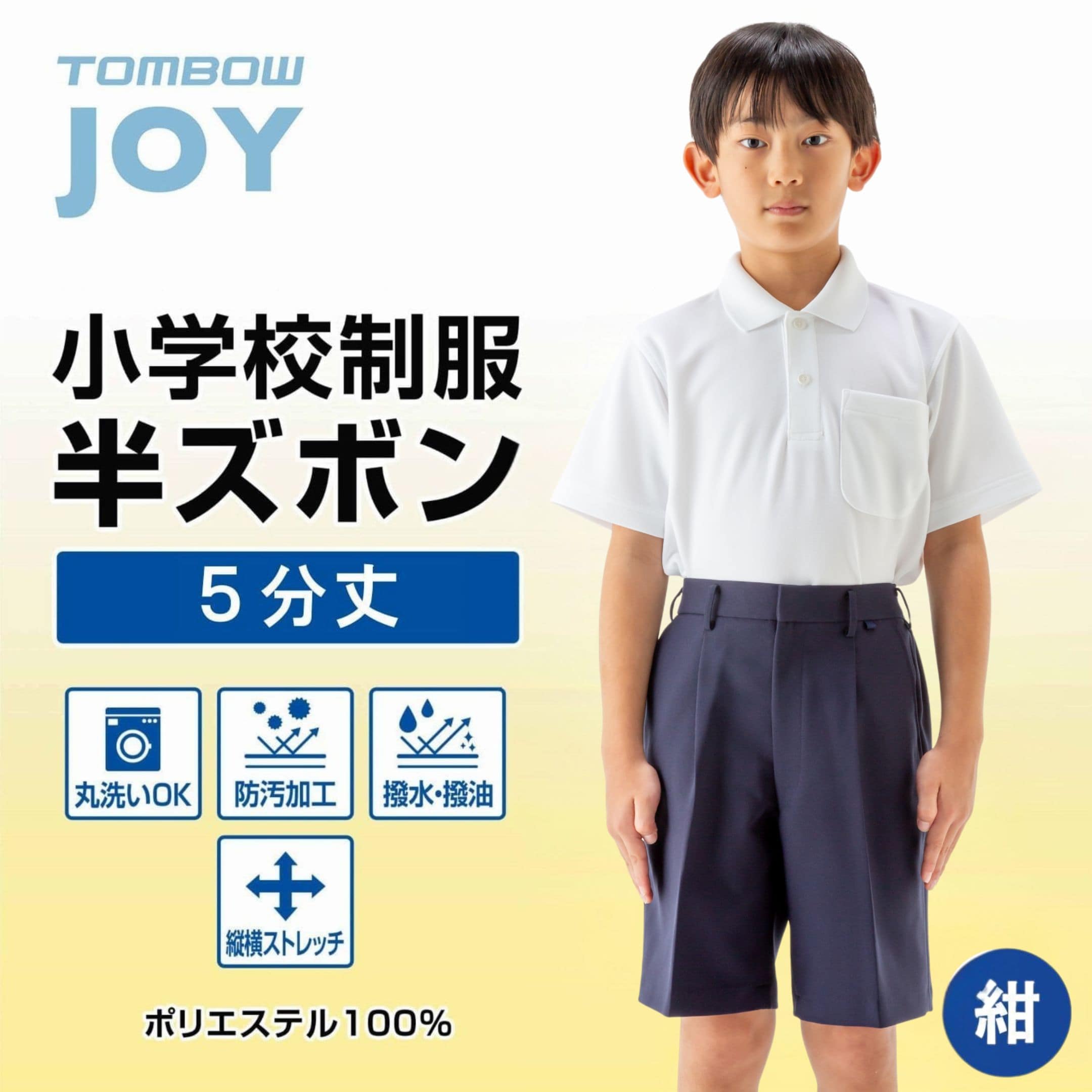洗濯機で洗える 半ズボン 紺 5分丈 トンボ 学生服