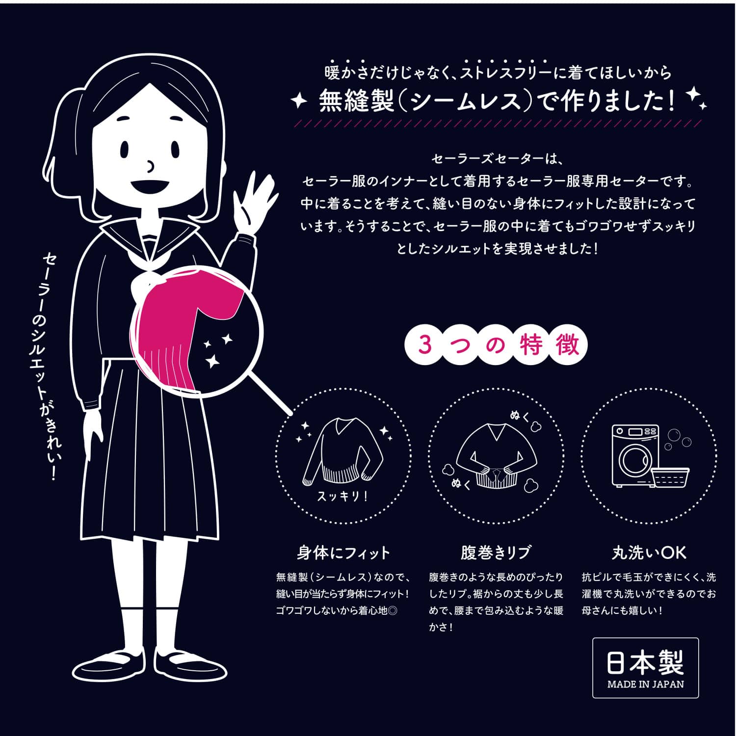 腹巻きリブのインナー "セーラーズセーター"
