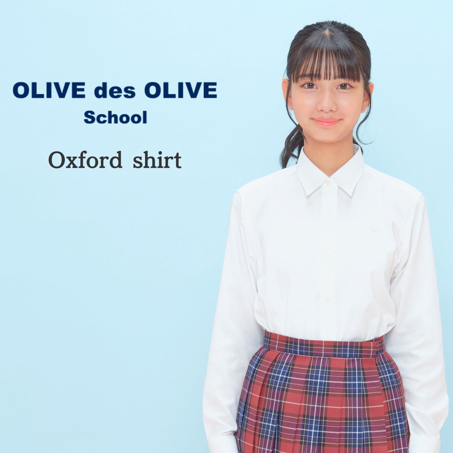 オックスフォードシャツ 女子 長袖 クラウン刺繍 オリーブデオリーブスクール