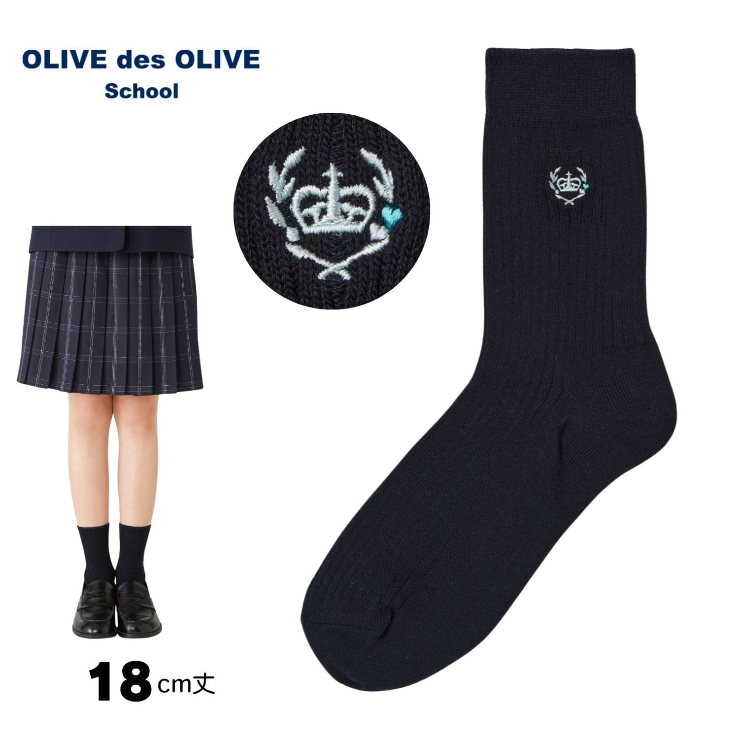 靴下 紺 ソックス 18cm丈 ハートクラウン刺繍 オリーブデオリーブスクール