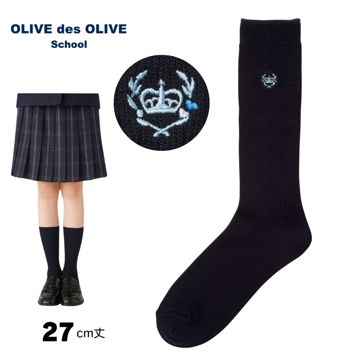靴下 紺 ソックス 27cm丈 ハートクラウン刺繍 オリーブデオリーブスクール