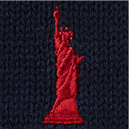 【デザイン】「自由の女神」のワンポイントが象徴的な定番ニット。 【こだわり素材】 ・一年を通して着用できるコットンアクリル素材。 ・毛玉になりにくいのが特長です。 ・アクリル混紡で型崩れしにくく、寸法安定性に優れています。 ・ネットに入れて洗濯機で洗えます。