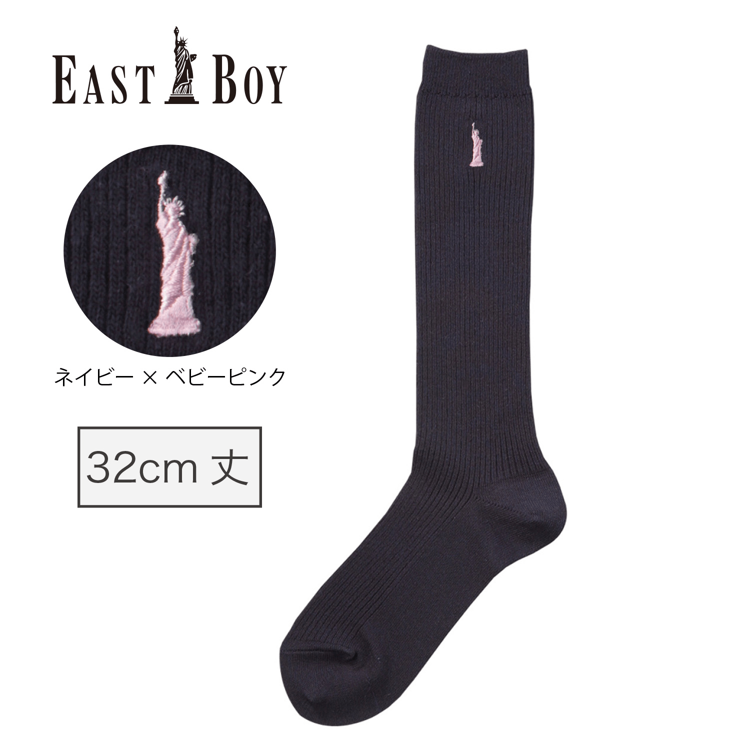 靴下 32・丈 片面刺繍 抗菌 防臭 紺 ソックス 女神刺繍入り イーストボーイ トンボ 学生服
