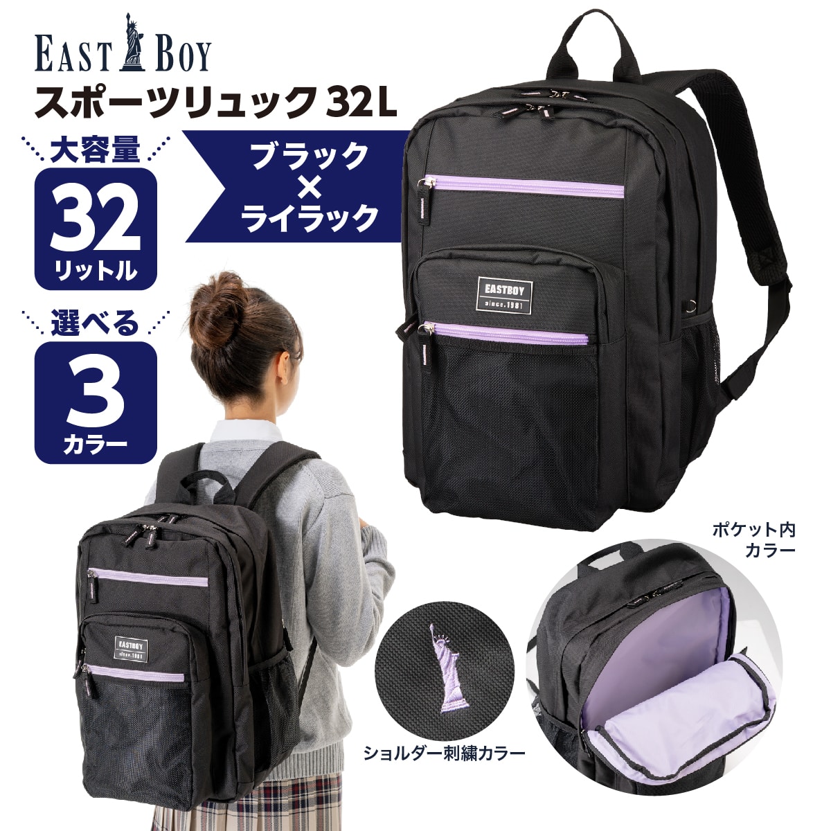 スポーツリュック黒(32L)イーストボーイ トンボ学生服