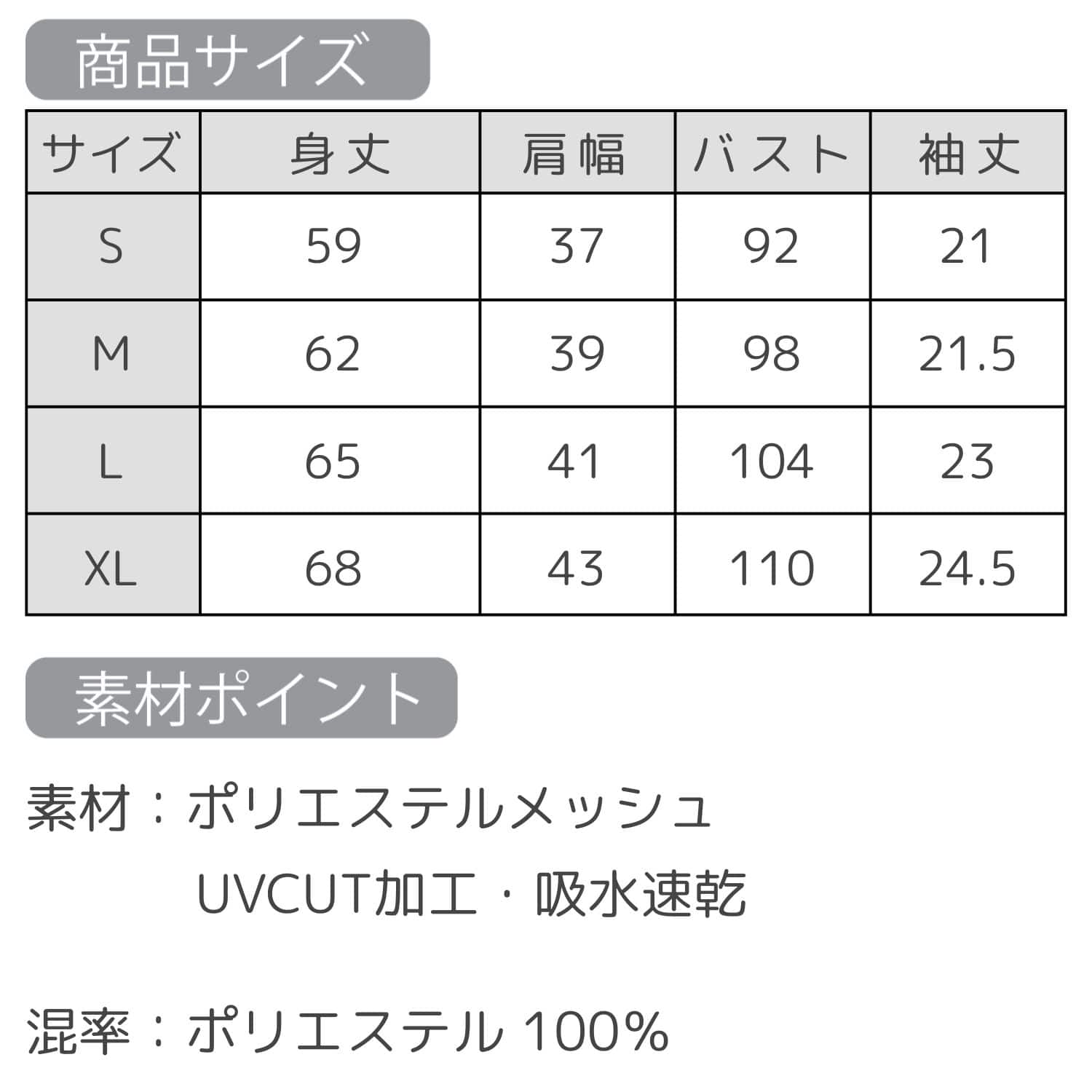 - UVカット・吸水速乾