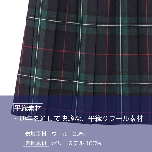 【こだわり素材】 ・一年を通して快適な、平織りウール素材のタータンチェックスカート。