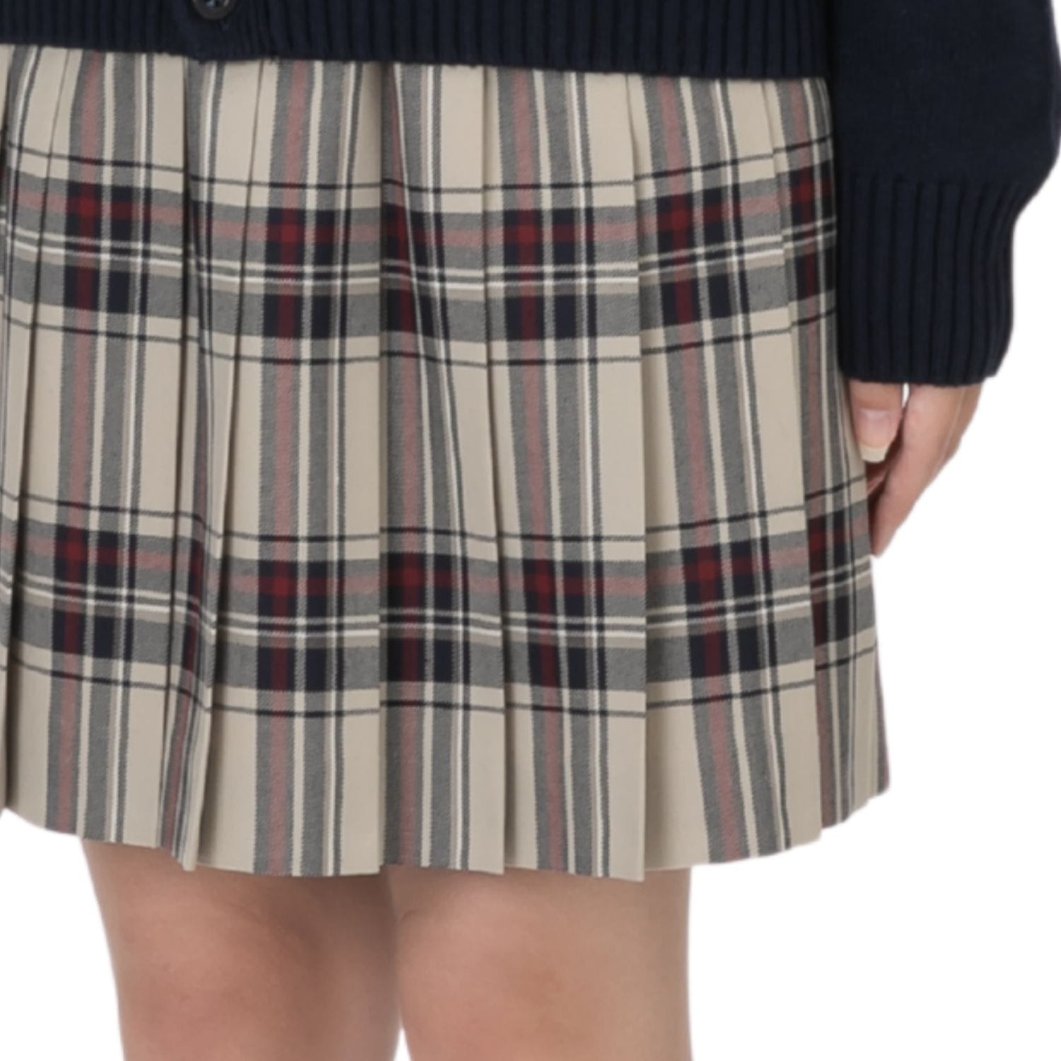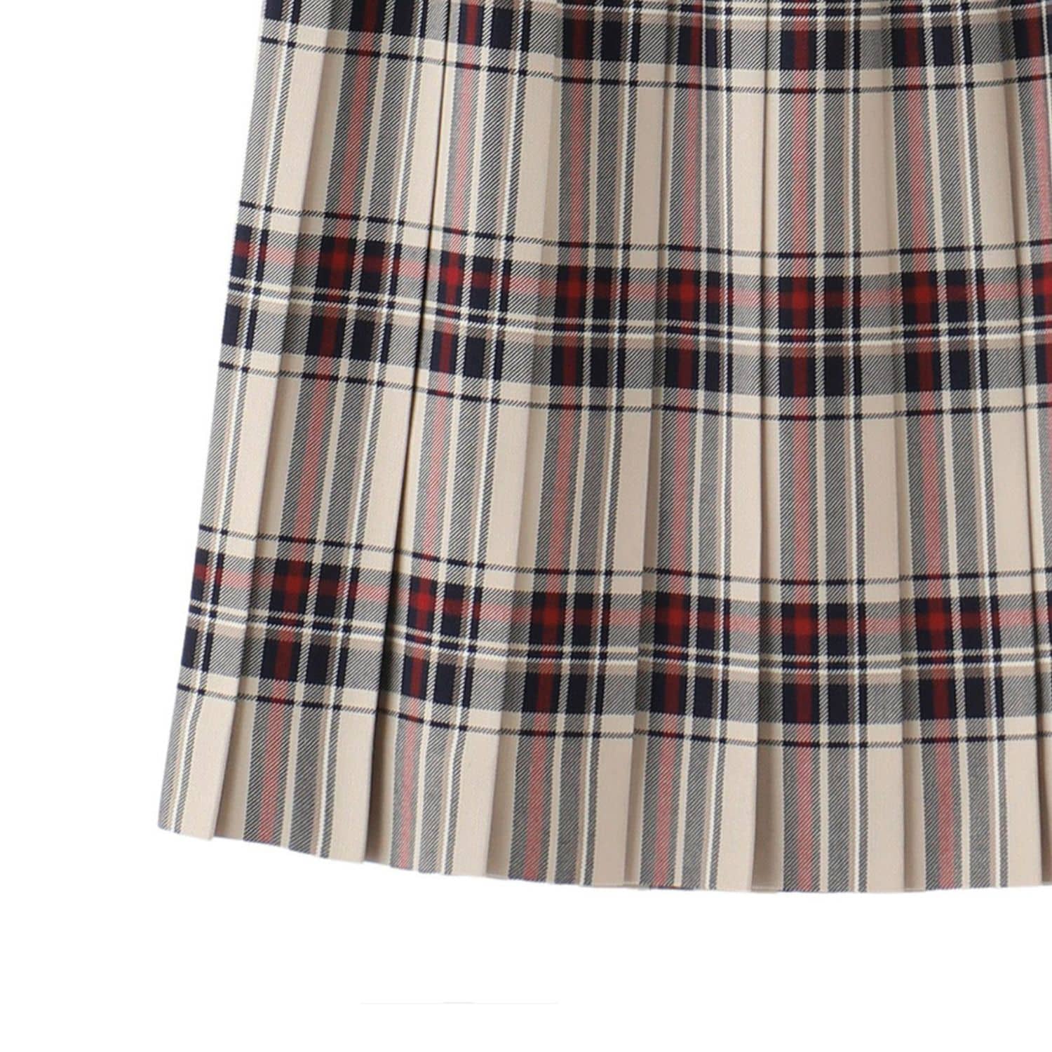 ・通年使用していただける綾織ウールと、ポリエステルのウォッシャブル素材に撥水加工を施したチェックスカート。