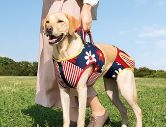 飼い主さんが「介助ベスト」や「介助パンツ」で補助して、リハビリ&トレーニングをしましょう。
