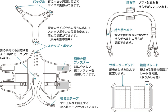 ※この商品は、愛犬の歩行補助のためのハーネスです。くれぐれも愛犬を無理に引っぱったり、持ち上げたりしないよう注意してください。