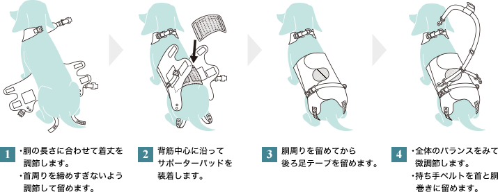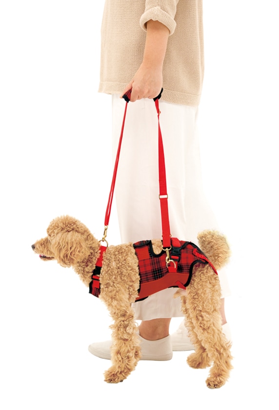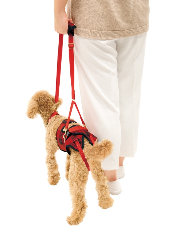 腰が悪くなったり、脚力が低下したワンちゃんの起き上がりを助け、歩行を補助するハーネスです